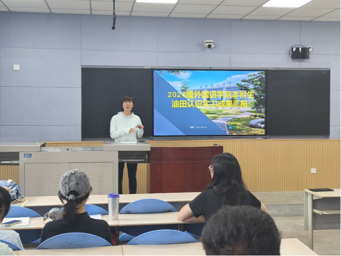 在成果匯報(bào)環(huán)節(jié),2024級英語、翻譯、俄語3個(gè)專業(yè)7個(gè)班級以雙語調(diào)研報(bào)告、演講、實(shí)習(xí)題材攝影成果展示等形式展示實(shí)習(xí)收獲。展現(xiàn)外語能力與能源知識的融合成果,為實(shí)習(xí)畫上圓滿句號。各班級匯報(bào)既展現(xiàn)了油氣勘探流程、壓裂技術(shù)等行業(yè)知識的認(rèn)知成果,也突出外語在技術(shù)文檔翻譯、國際合作溝通中的應(yīng)用實(shí)踐。各班班主任老師對學(xué)生將語言能力與能源行業(yè)深度結(jié)合的成果給予高度評價(jià)。
