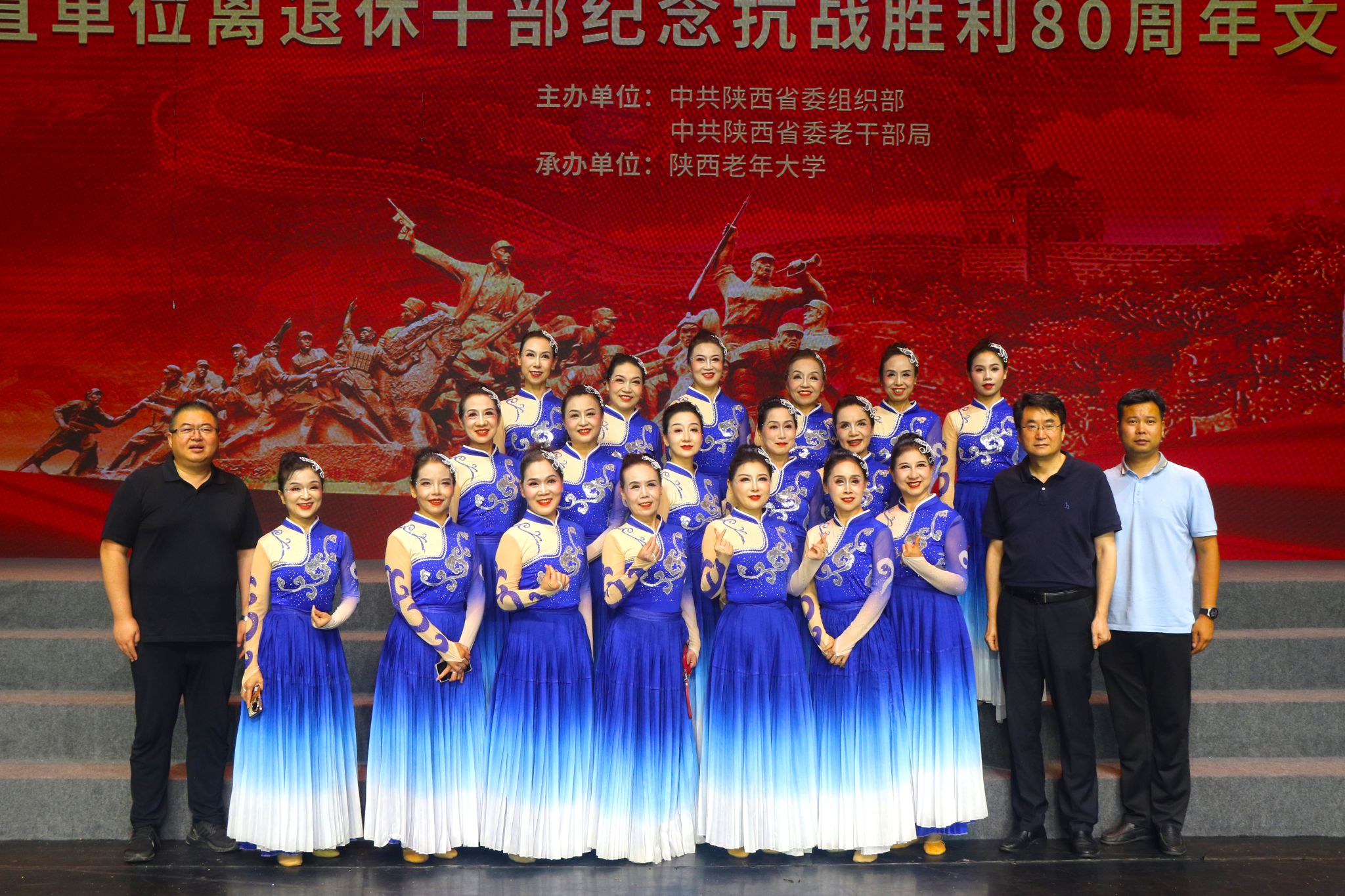 7月3日,由中共陜西省委組織部、中共陜西省委老干部局主辦,陜西老年大學(xué)承辦的 “永遠(yuǎn)跟黨走、奮進(jìn)新征程” 全省離退休干部慶祝中國人民抗日戰(zhàn)爭暨世界反法西斯戰(zhàn)爭勝利80周年文藝演出,在西安人民劇院隆重舉行。我校離退休工作處工作人員、離退休教職工代表及老年大學(xué)學(xué)員代表現(xiàn)場觀看了演出。