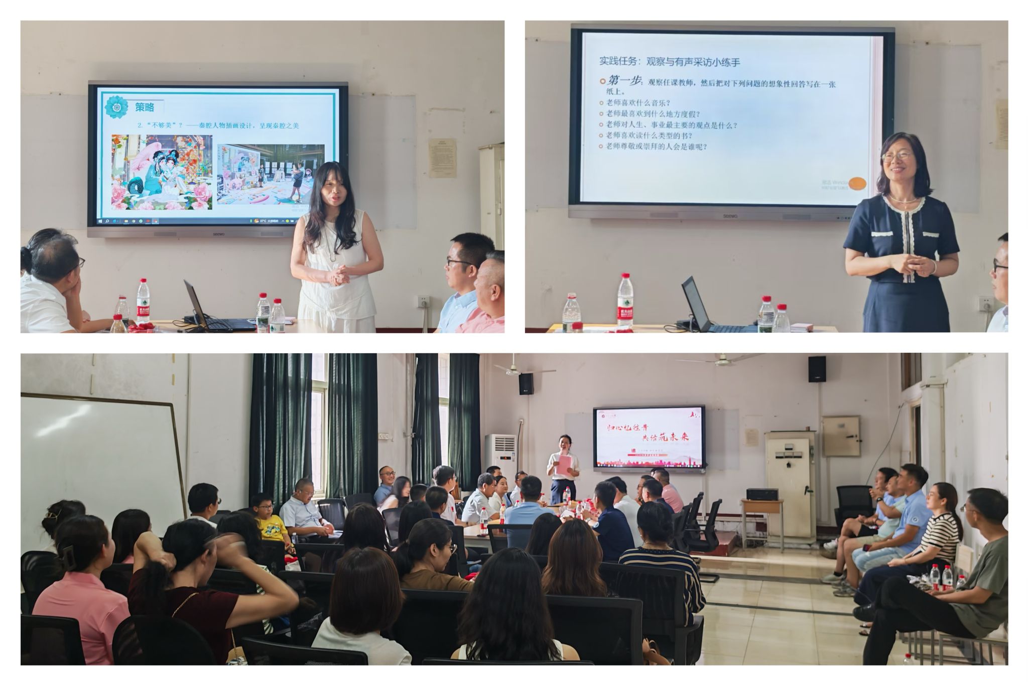 師生座談會。下午16:00,雁塔校區(qū)一號教學(xué)樓f407會議室座無虛席,“歸心憶往昔·共話筑未來”人文學(xué)院師生座談會在此舉辦。余小勇致開場詞,他代表學(xué)院向遠(yuǎn)道而來的校友表示熱烈歡迎,他提到,校友們在不同領(lǐng)域書寫精彩,把人文精神播撒四方。大家是學(xué)院最寶貴的財富,無論身在何處,人文學(xué)院永遠(yuǎn)是大家的最堅實(shí)的后盾。方亭向校友們介紹了學(xué)校與學(xué)院今年的發(fā)展,展示了學(xué)院在學(xué)科建設(shè)、人才培養(yǎng)等方面取得的突破與成就,并展望了學(xué)院未來發(fā)展的美好愿景。隨后,校友們結(jié)合自身境況和工作經(jīng)驗(yàn),與各專業(yè)教師展開深入討論,積極建言獻(xiàn)策,助力學(xué)院未來發(fā)展規(guī)劃。在座談會中,還有一個特別的環(huán)節(jié)。應(yīng)校友邀請,設(shè)計系教授肖雪鋒和新聞系教授單曉穎,為校友們開展了兩節(jié)別開生面的微課堂,分別聚焦陜西非遺品牌傳播和新聞有聲采訪,瞬間將校友們拉回到了往昔的校園課堂時光,讓他們那份深藏在心底的校園情懷得到了進(jìn)一步的升華。