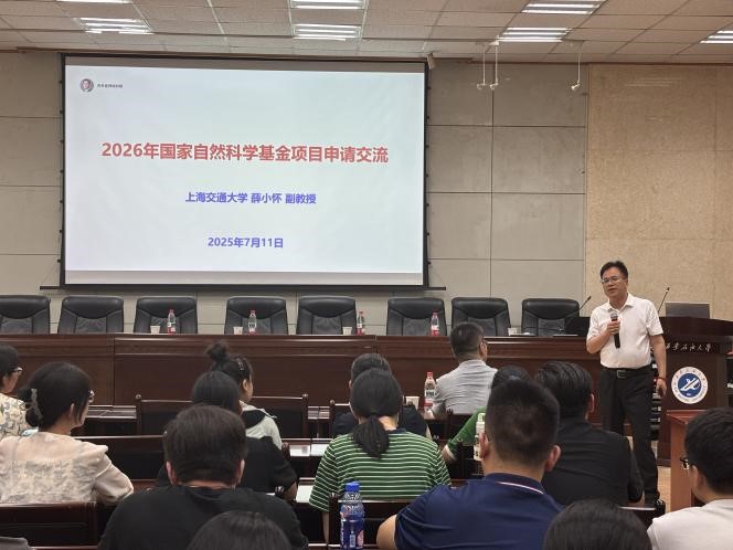 隨后,薛小懷以“2026年國家自然科學(xué)基金項(xiàng)目申請交流”為題,結(jié)合自身評(píng)審經(jīng)驗(yàn),從國家自然科學(xué)基金項(xiàng)目申請要做的兩件事、基礎(chǔ)研究的本質(zhì)、自然基金申請的本質(zhì)、自然基金申請中標(biāo)的三個(gè)要素等七個(gè)方面展開,重點(diǎn)介紹了申請基金應(yīng)該注意的關(guān)鍵問題,并圍繞基金申報(bào)與在場師生展開了深入交流。