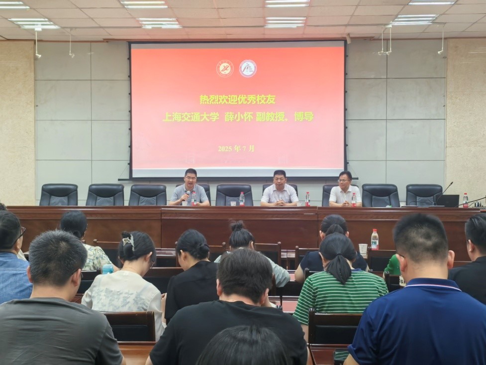 7月11日,材料科學(xué)與工程學(xué)院迎來了一場意義非凡的學(xué)術(shù)交流活動(dòng),學(xué)院91級(jí)優(yōu)秀校友、上海交通大學(xué)副教授、博導(dǎo)薛小懷重返母校贈(zèng)書并作2026年國家自然科學(xué)基金項(xiàng)目申請交流報(bào)告。贈(zèng)書儀式和報(bào)告會(huì)由劉德學(xué)院長主持,學(xué)院黨委書記耿嶺、青年教師及碩士生代表80余人參加了贈(zèng)書儀式和報(bào)告會(huì)。