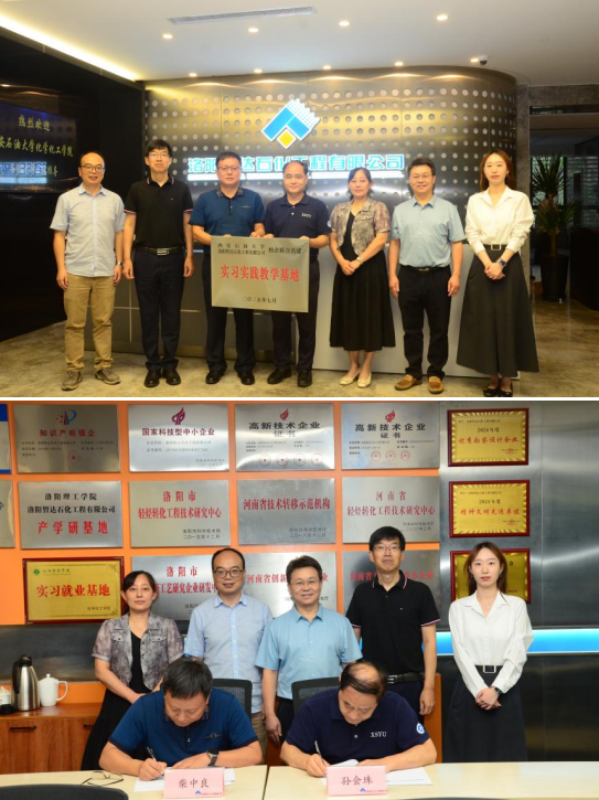 為進(jìn)一步加強(qiáng)校企合作,強(qiáng)化校外實(shí)習(xí)實(shí)踐教學(xué)基地建設(shè),7月22日,化學(xué)化工學(xué)院黨委書記孫會(huì)珠、副院長(zhǎng)李善建、化工系主任申志兵一行前往洛陽(yáng)智達(dá)石化工程有限公司(以下簡(jiǎn)稱“智達(dá)工程公司”)開展共建校外實(shí)習(xí)實(shí)踐教學(xué)基地合作協(xié)議簽署暨揭牌儀式。洛陽(yáng)智達(dá)石化工程有限公司總經(jīng)理柴中良、副總工程師張立軍、綜合部部長(zhǎng)王玲、人力資源部部長(zhǎng)張欣怡共同參加了揭牌儀式。