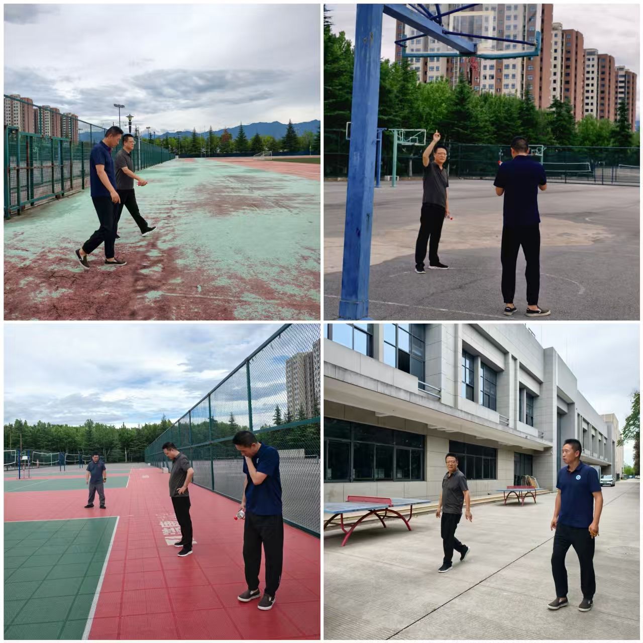 在安全專項檢查中,學院對鄠邑校區(qū)西體育場、籃球場、排球場、網球場、羽毛球場、素質拓展基地等重要區(qū)域進行了細致的安全隱患排查。檢查內容涵蓋場地設施結構穩(wěn)固性、用電安全、消防設備完好性、防護設施可靠性以及場地器材維護狀況等多個關鍵環(huán)節(jié)。劉小波說,校園安全是學校高質量發(fā)展的基石,我們要以“時時放心不下”的責任感抓好隱患排查,為學校發(fā)展貢獻體育力量。李壽邦結合檢查情況,要求學院相關負責人、場地管理員要定期巡查,對發(fā)現的老化區(qū)域要設置警戒標識,并及時上報學校,組織更換,確保師生使用安全。