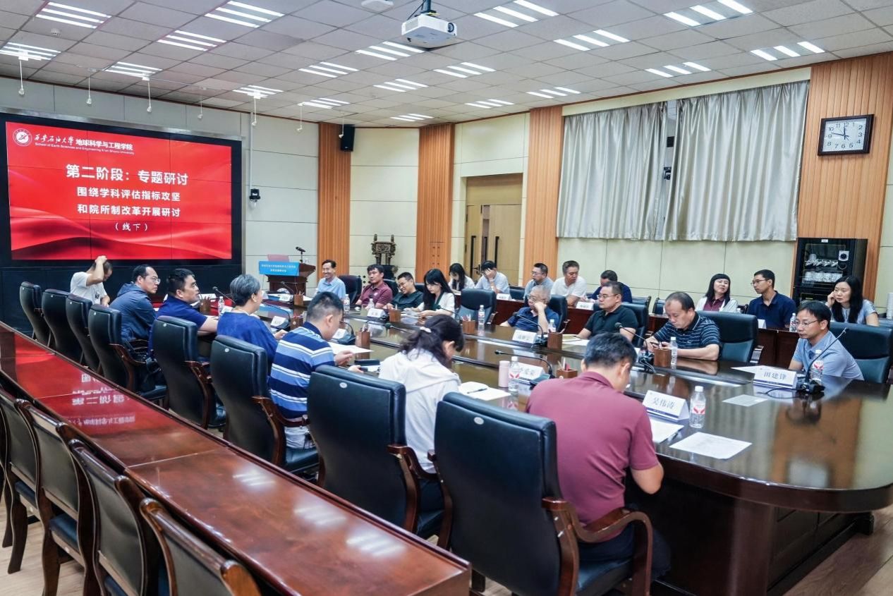 藍(lán)圖聚力,部署攻堅(jiān)任務(wù),激活改革發(fā)展“新動(dòng)能”。8月10日上午,地球科學(xué)與工程學(xué)院改革發(fā)展研討會(huì)在雁塔校區(qū)第二會(huì)議室以線上線下聯(lián)動(dòng)方式召開(kāi)。高黎主持會(huì)議并作動(dòng)員講話,通過(guò)四組關(guān)鍵指標(biāo)警示數(shù)據(jù)對(duì)比,分析制約學(xué)院發(fā)展的三大結(jié)構(gòu)性矛盾,結(jié)合第六輪學(xué)科評(píng)估五大顛覆性變化,強(qiáng)調(diào)聚焦院所制改革等重點(diǎn)任務(wù),要求進(jìn)一步提高站位抓認(rèn)識(shí),迅速行動(dòng)抓落實(shí),突出重點(diǎn)抓攻堅(jiān),同步壓實(shí)責(zé)任清單,守好安全穩(wěn)定底線,以“功成不必在我”的境界和“功成必定有我”的擔(dān)當(dāng)推動(dòng)學(xué)院發(fā)展邁上新臺(tái)階。宋立軍傳達(dá)學(xué)校學(xué)科建設(shè)工作調(diào)度會(huì)精神,以“深化地學(xué)一流學(xué)科建設(shè) 推動(dòng)學(xué)院高質(zhì)量發(fā)展”為題,從學(xué)科發(fā)展概況、學(xué)科發(fā)展規(guī)劃和近期重點(diǎn)工作三個(gè)方面,通報(bào)學(xué)院學(xué)科建設(shè)總體進(jìn)展和院所制改革思路。副院長(zhǎng)沈鴻雁通報(bào)近期教學(xué)重點(diǎn)工作,解讀學(xué)??蒲羞_(dá)標(biāo)工作和學(xué)科競(jìng)賽等學(xué)校重要文件精神。副院長(zhǎng)曹靜杰解讀學(xué)?!皩W(xué)科達(dá)標(biāo)年”重點(diǎn)工作,并就推進(jìn)學(xué)院“十五五”規(guī)劃編制、第六輪學(xué)科評(píng)估籌備工作作重點(diǎn)部署。線下會(huì)議同步圍繞“學(xué)科評(píng)估指標(biāo)攻堅(jiān)”“院所制改革”開(kāi)展研討。學(xué)院黨委委員、領(lǐng)導(dǎo)班子成員,學(xué)術(shù)分委員會(huì)成員,學(xué)位評(píng)定分委員會(huì)委員,工會(huì)委員會(huì)委員,各系黨支部書記(副書記)、主任(副主任),各學(xué)科、專業(yè)負(fù)責(zé)人,各辦公室主任(副主任)等線下參會(huì)。全院其他教職工線上參會(huì)。