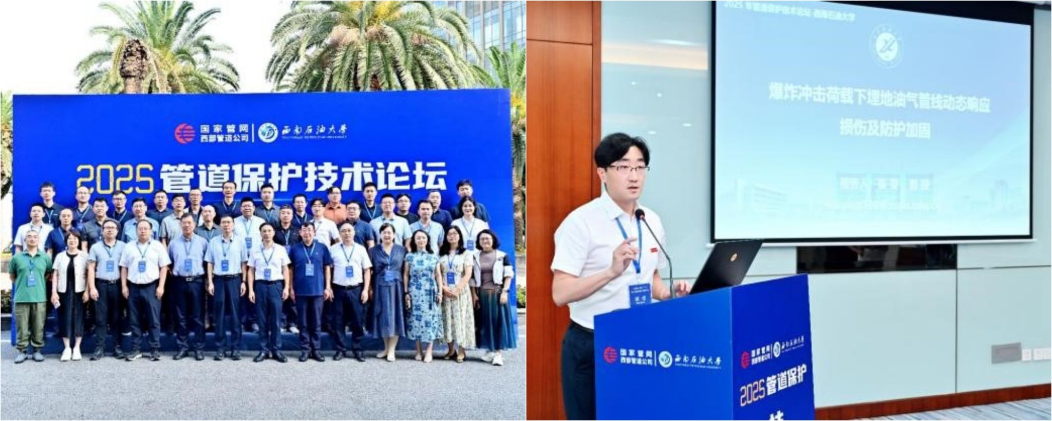 8月20日—22日,管道工程學(xué)院受邀委派副院長(zhǎng)崔瑩教授代表學(xué)院赴西南石油大學(xué)參加了由國(guó)家管網(wǎng)集團(tuán)西部管道公司主辦,西南石油大學(xué)承辦的“2025管道保護(hù)技術(shù)論壇”并做了“爆炸沖擊荷載下埋地油氣管線動(dòng)態(tài)響應(yīng)損傷及防護(hù)加固”主題報(bào)告。論壇上國(guó)家管網(wǎng)集團(tuán)西部管道公司黨委委員、副總經(jīng)理王新生和西南石油大學(xué)黨委書(shū)記張烈輝分別做了主旨發(fā)言。崔瑩的學(xué)術(shù)報(bào)告獲得了會(huì)議主持人中國(guó)石油大學(xué)(華東)李玉星教授、召集人西南石油大學(xué)廖柯熹教授等與會(huì)專家們的肯定,并對(duì)學(xué)院在極端荷載下長(zhǎng)輸油氣管線的安全評(píng)價(jià)方面做出的前沿探索和基礎(chǔ)研究表示了贊賞。