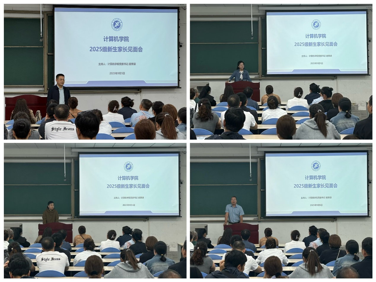 為幫助新生家長(zhǎng)更好地了解學(xué)院情況,搭建家校溝通的有效途徑, 9月5日下午計(jì)算機(jī)學(xué)院于博思樓B102教室召開2025級(jí)新生家長(zhǎng)見面會(huì)。學(xué)院黨委書記龐秉謙主持本次會(huì)議,黨委副書記王瑩、副院長(zhǎng)張留美、楊文陽(yáng)及部分 2025 級(jí)新生家長(zhǎng)出席了此次見面會(huì)。