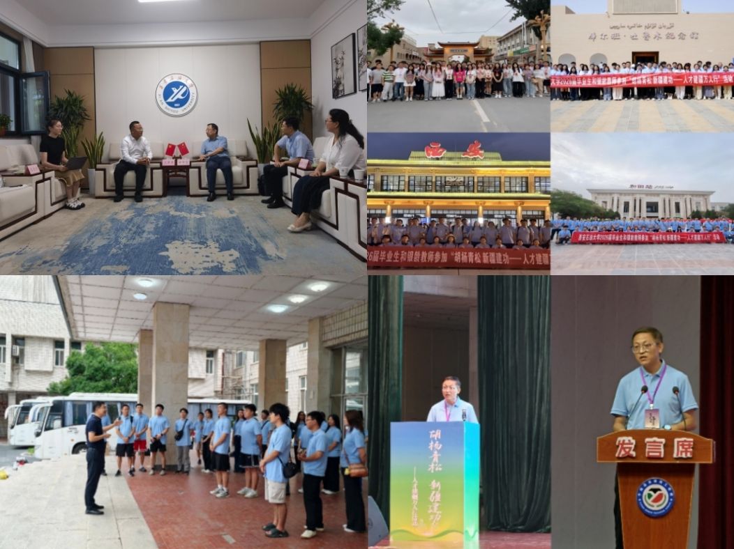 8月4日至14日,我校受邀參加新疆自治區(qū)“胡楊青松 新疆建功——人才建疆萬(wàn)人行”第二期活動(dòng)。就業(yè)創(chuàng)業(yè)指導(dǎo)中心、離退休工作處及各院(系)組織40余名師生走進(jìn)和田地區(qū)、烏魯木齊市的重點(diǎn)產(chǎn)業(yè)園區(qū)、企業(yè)、學(xué)校、博物館、社區(qū),通過(guò)實(shí)地參觀、座談交流等,深入開(kāi)展就業(yè)研學(xué),精準(zhǔn)對(duì)接人才需求,拓寬就業(yè)渠道?;顒?dòng)前期,副校長(zhǎng)種宇宏與新疆人才創(chuàng)新科技有限公司副總經(jīng)理王彥斐一行在雁塔校區(qū)行政樓會(huì)客廳座談交流。雙方就進(jìn)一步加強(qiáng)校地交流,深化產(chǎn)學(xué)研合作達(dá)成共識(shí)。就業(yè)創(chuàng)業(yè)指導(dǎo)中心主任王亮為參與師生舉行出征儀式并發(fā)放“愛(ài)心禮包”。就業(yè)創(chuàng)業(yè)指導(dǎo)中心副主任楊生強(qiáng)代表此行5所學(xué)校在和田地委黨校舉行的“胡楊青松 新疆建功——人才建疆萬(wàn)人行”活動(dòng)啟動(dòng)儀式上發(fā)言。