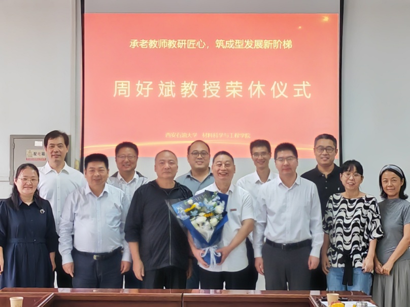 9月10日上午,在第41個教師節(jié)之際,材料科學與工程學院在鄠邑校區(qū)天工樓204會議室為2025年退休的周好斌教授舉行了隆重而溫馨的教職工榮休儀式。儀式由學院黨委書記耿嶺主持,副校長張驍勇教授、學院領導班子成員、各教研室主任和教師代表參加了儀式。