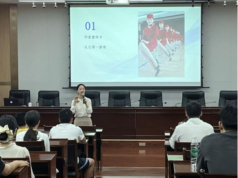 常靜教授圍繞“舉止禮儀與文化應(yīng)用”這一主題,通過理論講解、案例分析和現(xiàn)場互動等多種形式,系統(tǒng)講解了禮儀在日常生活、職場面試等各種場景中的具體應(yīng)用。她結(jié)合自己多年在禮儀培訓與空乘專業(yè)教學中的經(jīng)驗,從形象管理、言行舉止、溝通技巧等多個維度進行了生動細致的解讀,并針對研究生群體的實際需求提供了具有操作性的建議。參會研究生紛紛表示,此次培訓內(nèi)容實用、形式生動,對提升個人形象意識、增強表達與溝通能力具有積極的促進作用。