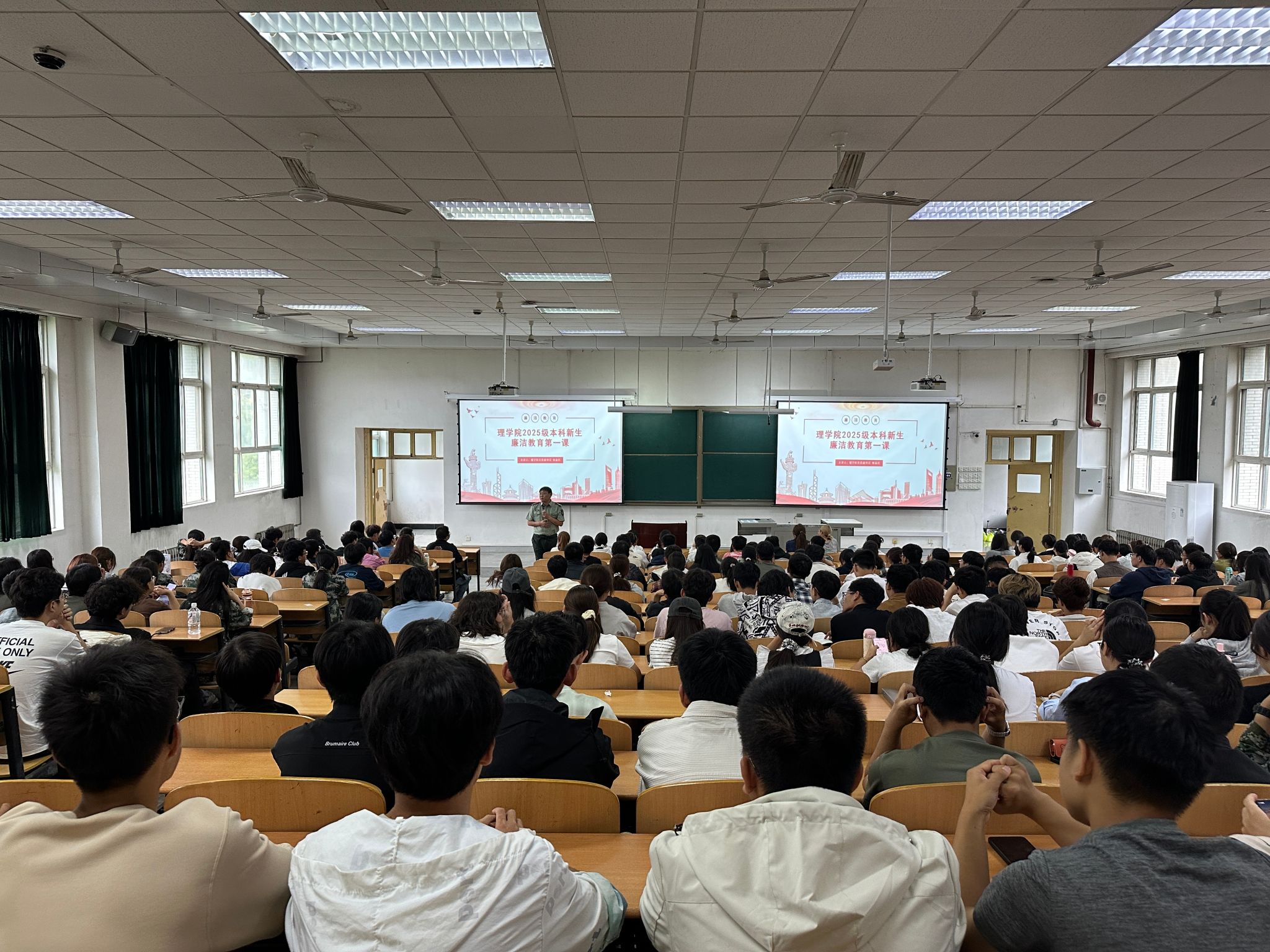 9月17日下午,理學(xué)院在博覽樓234教室為2025級(jí)本科新生開(kāi)設(shè)“廉潔教育第一課”。學(xué)院黨委副書(shū)記楊富民通過(guò)專(zhuān)題講座、案例分析和互動(dòng)討論等形式,引導(dǎo)新生樹(shù)立正確的價(jià)值觀,筑牢拒腐防變的思想根基。此次活動(dòng)是學(xué)院落實(shí)立德樹(shù)人根本任務(wù)、推進(jìn)“清廉校園”建設(shè)的重要舉措。