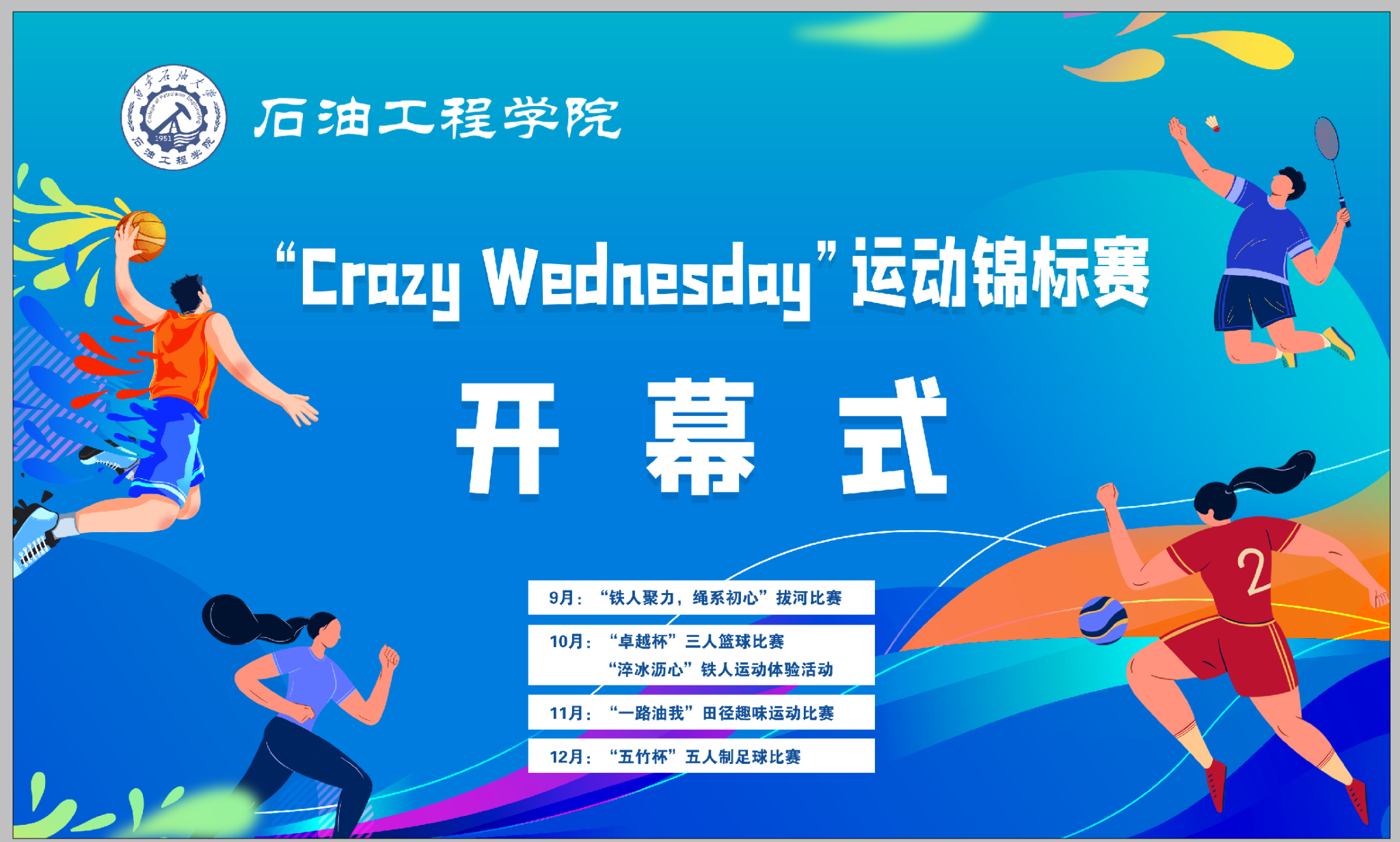 秋色浩無際,風(fēng)露洗晴空。9月24日,石油工程學(xué)院在鄠邑校區(qū)田徑場(chǎng)舉辦“CRAZY WEDNESDAY”(瘋狂星期三)運(yùn)動(dòng)錦標(biāo)賽開幕式。副校長(zhǎng)趙健,黨委辦公室(校長(zhǎng)辦公室)、黨委學(xué)生工作部、石油工程學(xué)院、體育學(xué)院負(fù)責(zé)同志,受聘教練員、師生代表300余人參加開幕式。