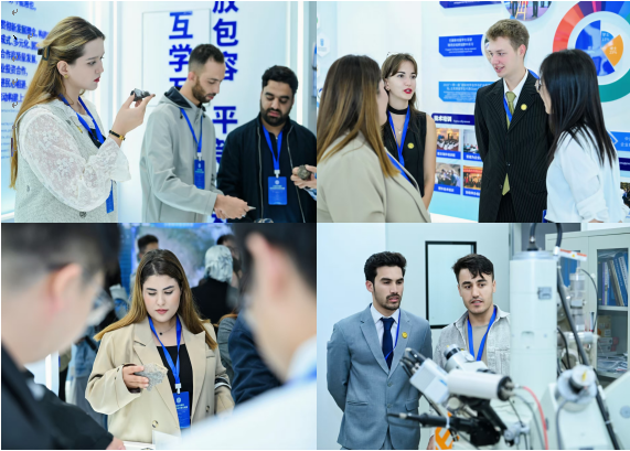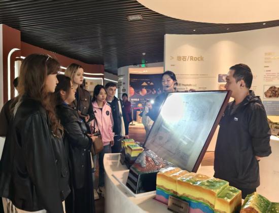 參觀學(xué)習(xí)環(huán)節(jié),師生們沉浸式參觀中心展廳與實(shí)驗(yàn)室,從地學(xué)領(lǐng)域國際合作成果展板到各類地質(zhì)標(biāo)本實(shí)物,深入了解上合組織成員國在地質(zhì)調(diào)查、資源勘探、人才培養(yǎng)等領(lǐng)域的國際合作歷程與突破。大家仔細(xì)觀察電子探針、場發(fā)射掃描電鏡等高精度儀器,了解其在地質(zhì)樣本分析與地質(zhì)結(jié)構(gòu)研究中的原理與應(yīng)用。過程中,國際學(xué)生們結(jié)合專業(yè)所學(xué)積極提問,科研人員耐心解答,現(xiàn)場互動氛圍熱烈。