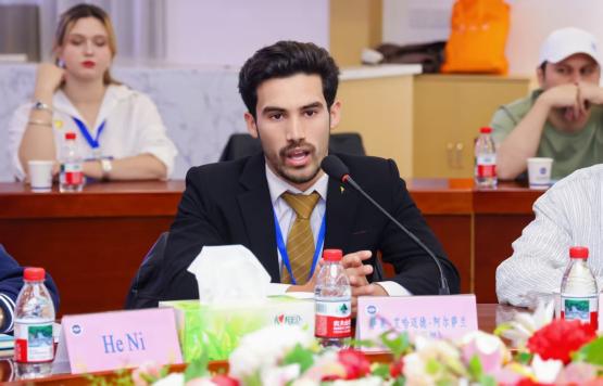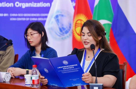 會議討論環(huán)節(jié),我校代表圍繞“青年如何參與上合組織地質(zhì)學(xué)方面的合作創(chuàng)新”議題,與各方參與代表開展圓桌會議,學(xué)生代表菲魯絲、黛西、薩萊分別作交流發(fā)言。菲魯絲提出以教育科研、數(shù)字技術(shù)、國際協(xié)作三大路徑推進(jìn)青年地學(xué)合作;黛西聚焦“三個(gè)主動”,即主動利用機(jī)會、主動解決問題、主動跨域交流給出實(shí)踐建議;薩萊則從責(zé)任使命切入,強(qiáng)調(diào)青年需將個(gè)人成長融入?yún)^(qū)域地學(xué)發(fā)展大局。最后,愛蓮娜為會議宣讀俄語版《青年地質(zhì)科學(xué)家倡議書》。