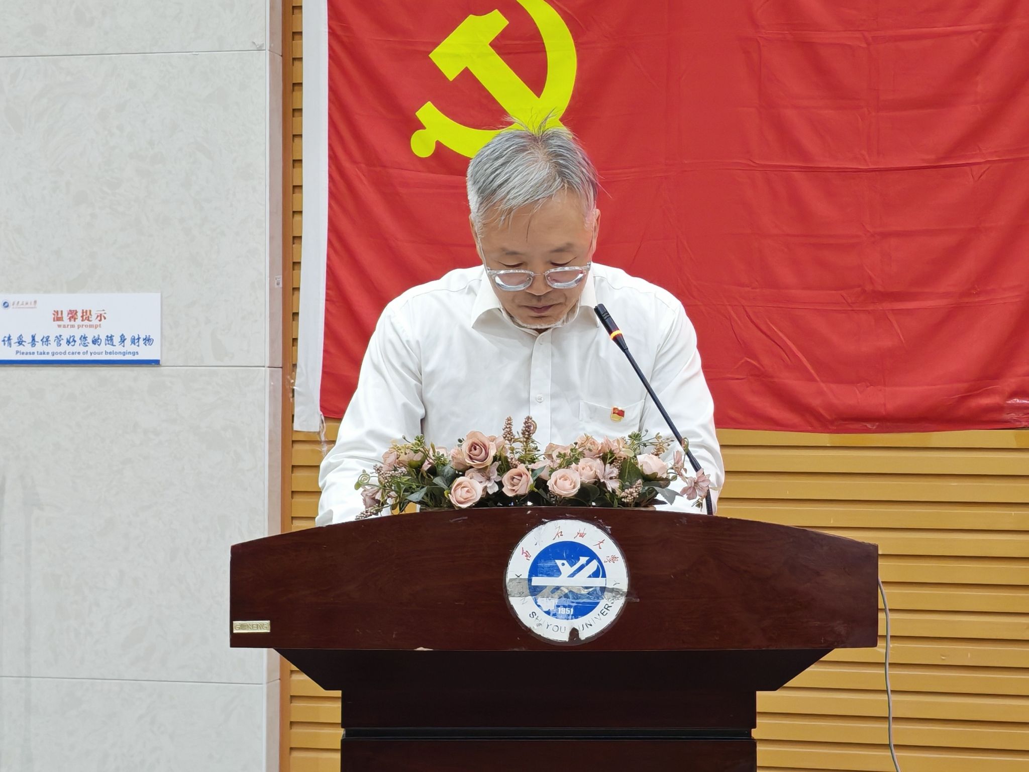 司馬文龍在大會上講話,他總結(jié)了石油工程學院過去一年黨建工作取得的突出成績,肯定了上一學年各學生支委和學生黨建辦公室的辛勤努力,并且對新一屆支委和學生黨建辦公室提出了四點要求,一是堅持政治忠誠,做聽黨話、跟黨走的大學生。石油工程學院學生黨員要深刻理解習近平總書記關于“能源的飯碗必須端在自己手里”的重要論述,將個人的“石油夢”融入國家能源安全的大潮流中。二是錘煉過硬本領,做立大志、成大才的大學生。作為西安石油大學主干專業(yè)的學生,必須將理論學習與實踐創(chuàng)新結(jié)合,夯實專業(yè)基礎,在實踐中提升創(chuàng)新能力。三是厚植服務情懷,做能吃苦、擔重任的大學生。石油工程學院學生黨員必須要牢記“服務學院、服務同學”的宗旨,在學風建設、志愿服務、日常生活中當好示范員、宣傳員、聯(lián)絡員,在學院的重要工作、重要時間節(jié)點做好服務員、主力軍、攻堅隊。四是弘揚優(yōu)良作風,做守規(guī)矩、樹正氣的大學生。要嚴守政治紀律和政治規(guī)矩,在考風學風、網(wǎng)絡言行、集體生活中發(fā)揮先鋒模范作用,尤其要在科研誠信、學風建設中立標桿、作表率,以“一身正氣、兩袖清風”的品格擦亮石油工程學院學生黨員底色。