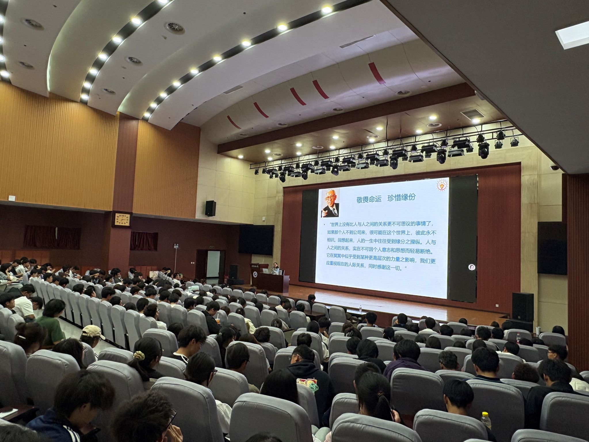 講座在輕松活潑的互動(dòng)中拉開帷幕。肖老師以“拍拍肩、拉拉手、吼一吼”的破冰游戲打破陌生感,迅速點(diǎn)燃現(xiàn)場氣氛。同學(xué)們?cè)跉g聲笑語中拉近距離,報(bào)告廳內(nèi)暖意流動(dòng),為整場講座奠定了開放而溫暖的基調(diào)。肖老師從大學(xué)生活的日常場景切入,圍繞“課堂占座”“圖書館互助”“觀點(diǎn)討論”等真實(shí)情境,生動(dòng)講述了同窗情誼對(duì)個(gè)人成長的重要意義。她指出,大學(xué)不僅是知識(shí)的殿堂,更是人際交往能力提升的關(guān)鍵階段,良好的同伴關(guān)系是大學(xué)四年中最珍貴的“成長禮物”。