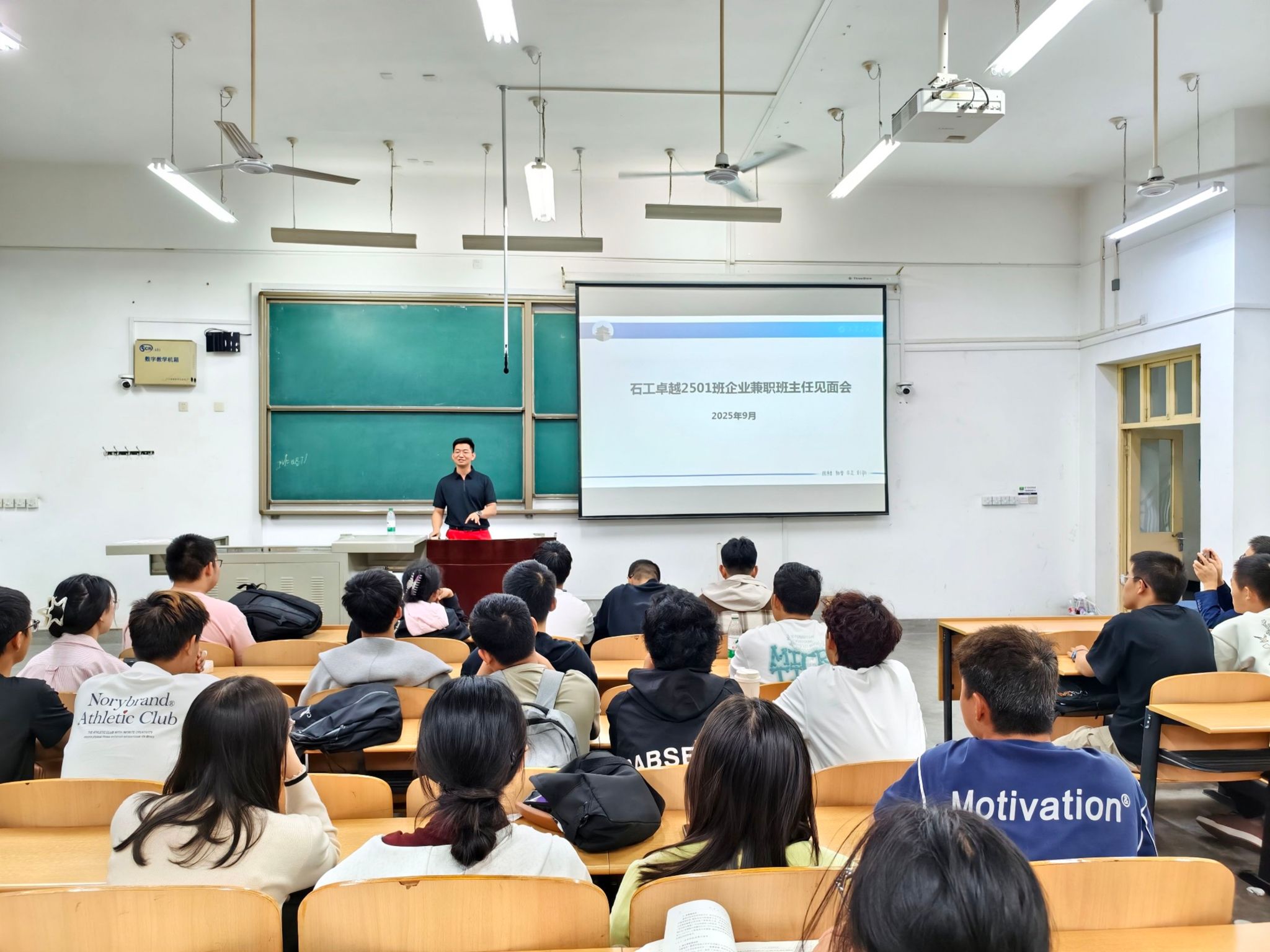 在博思樓208教室,陳建國(guó)組織召開(kāi)了石工(卓越)2501班首次線下班會(huì),他勉勵(lì)同學(xué)們要傳承發(fā)揚(yáng)石油精神、鐵人精神,樹(shù)立“為祖國(guó)獻(xiàn)石油”的遠(yuǎn)大理想,在服務(wù)行業(yè)發(fā)展中實(shí)現(xiàn)人生價(jià)值。
