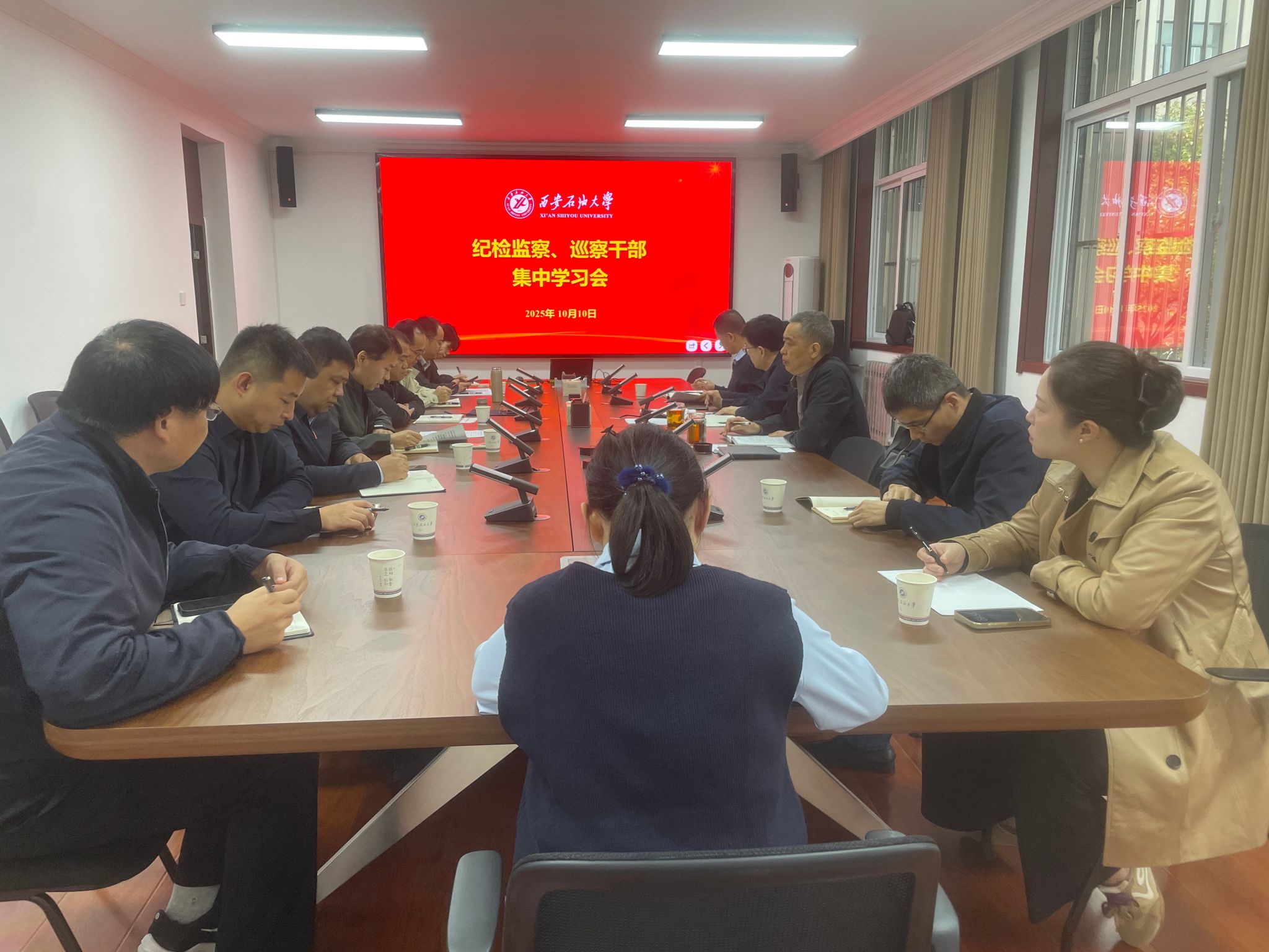 10月10日上午,紀(jì)檢巡察干部2025年第17次集中學(xué)習(xí)會(huì)在鄠邑校區(qū)辦公樓第四會(huì)議室召開(kāi)。紀(jì)檢監(jiān)察機(jī)構(gòu)、黨委巡察工作辦公室干部,二級(jí)單位黨組織紀(jì)檢委員參加會(huì)議。會(huì)議由校黨委副書(shū)記、紀(jì)委書(shū)記、監(jiān)察專(zhuān)員王輝強(qiáng)主持。