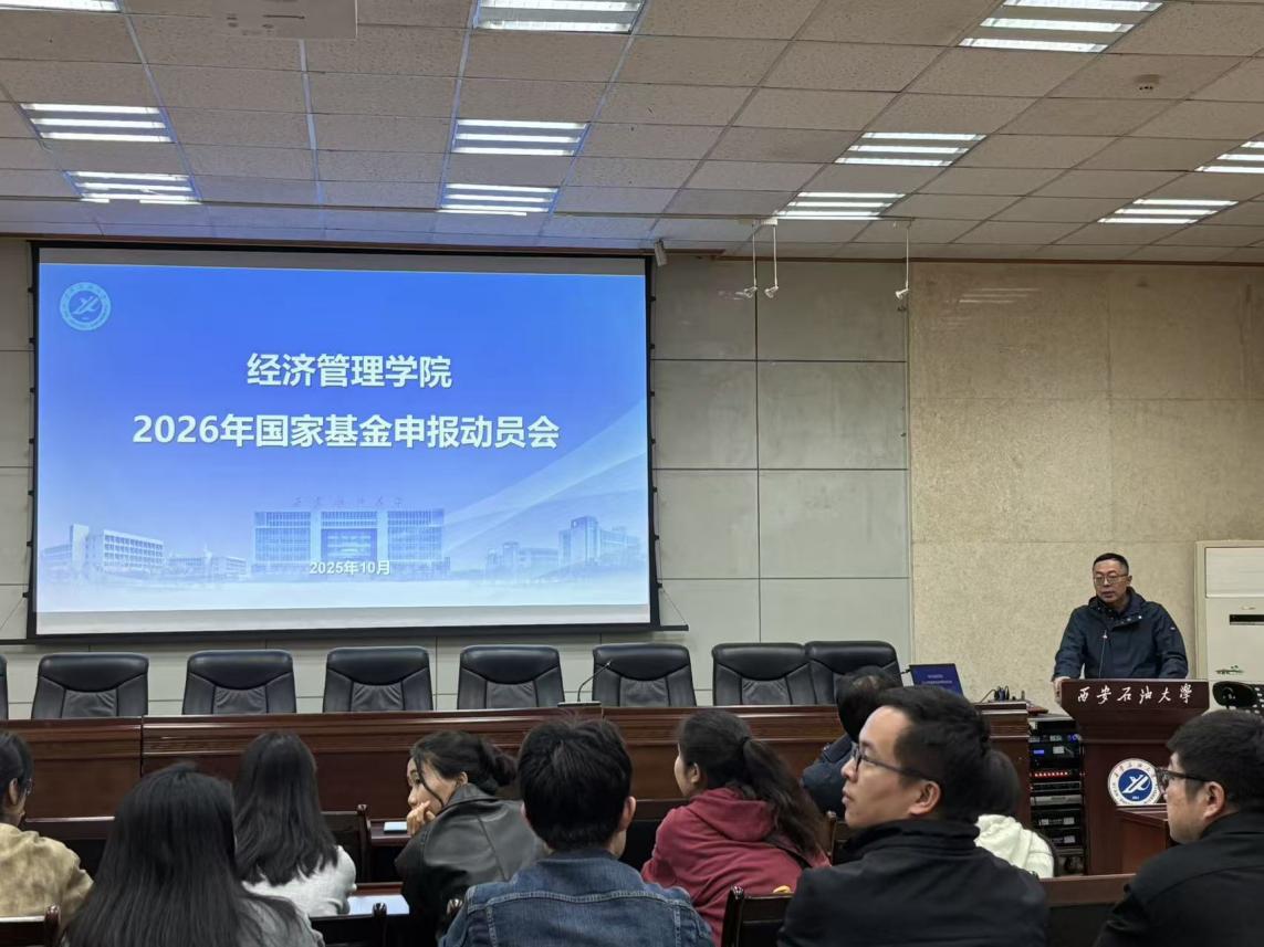 為提前謀劃、精準布局,進一步提升學(xué)院國家級科研項目的申報質(zhì)量與立項率,10月10日下午,經(jīng)濟管理學(xué)院在雁塔校區(qū)第三會議室召開了2026年國家基金申報動員會。學(xué)院院長吳勛及擬申報國家基金的20余名青年博士教師參加了本次會議。會議由副院長李春霄主持。