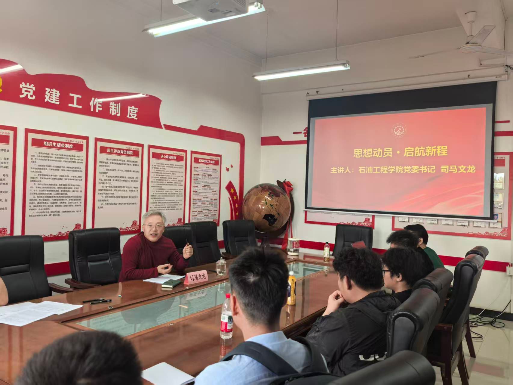 10月15日,石油工程學(xué)院在鄠邑校區(qū)開(kāi)物樓561會(huì)議室舉辦“奮進(jìn)班”班會(huì)暨學(xué)生家長(zhǎng)見(jiàn)面會(huì),聚焦本科學(xué)籍異動(dòng)生開(kāi)展育人活動(dòng)。學(xué)院黨委書(shū)記司馬文龍、院長(zhǎng)黃海、學(xué)生工作辦公室副主任史陽(yáng)、各年級(jí)輔導(dǎo)員、教學(xué)辦相關(guān)同志以及42名學(xué)生和家長(zhǎng)參加會(huì)議。
