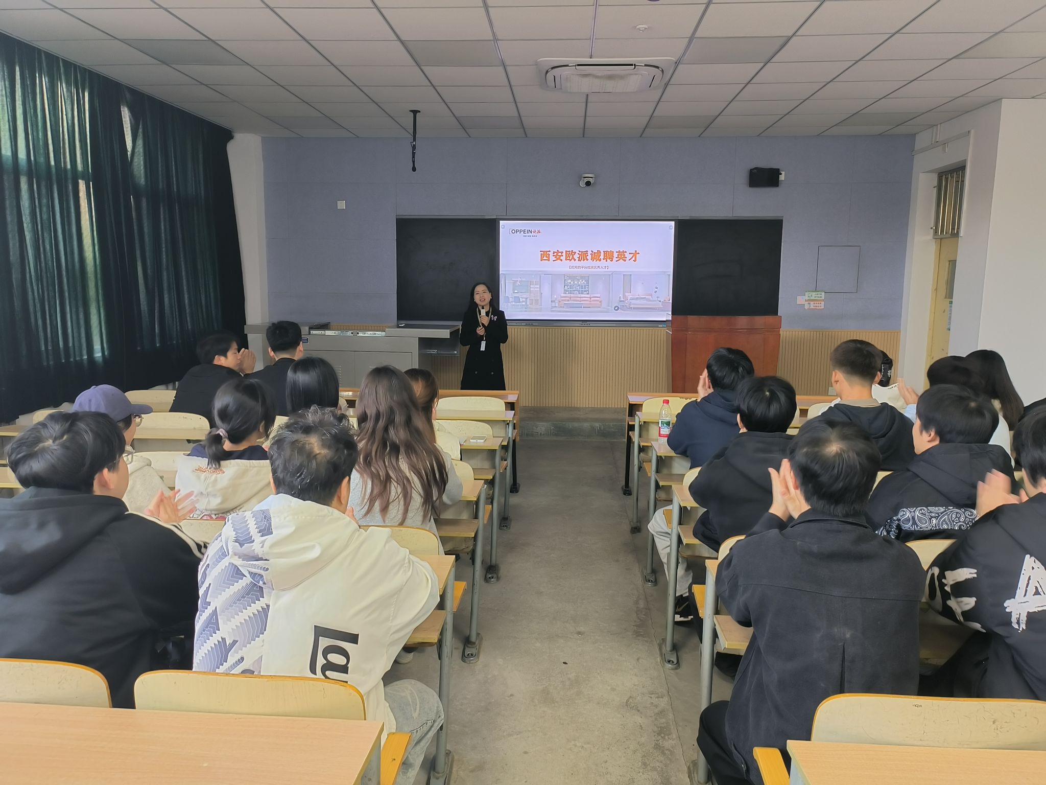10月27日,人文學院邀請西安歐派家居集團在博覽樓103教室舉辦專場招聘宣講會,學院2026屆環(huán)境設計相關(guān)專業(yè)學生20余人參加。