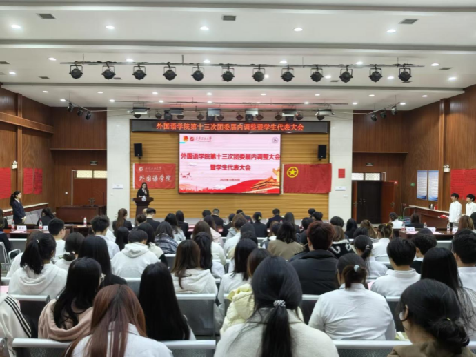 10月30日,外國(guó)語學(xué)院第十三次團(tuán)委屆內(nèi)調(diào)整暨學(xué)生代表大會(huì)在鄠邑校區(qū)崇文樓118多功能廳隆重召開。校團(tuán)委副書記王軍策、外國(guó)語學(xué)院各年級(jí)團(tuán)總支書記、校學(xué)生會(huì)執(zhí)行主席以及各兄弟院(系)學(xué)生會(huì)負(fù)責(zé)人,本次大會(huì)學(xué)生代表共150余人參加。
