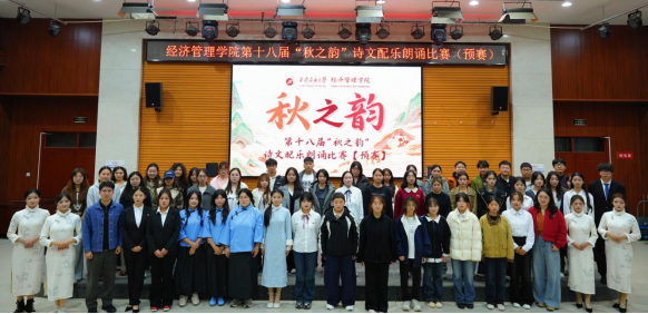 為深入弘揚愛國主義精神,傳承中華優(yōu)秀傳統(tǒng)文化,提升學(xué)生人文素養(yǎng)。2025年10月30日晚,經(jīng)濟管理學(xué)院第十八屆“秋之韻”詩文配樂朗誦比賽初賽在崇文樓118教室溫情啟幕。經(jīng)濟管理學(xué)院團學(xué)指導(dǎo)老師李政、2025級輔導(dǎo)員劉清,學(xué)院團學(xué)干部、2025級新生參加了此次活動。