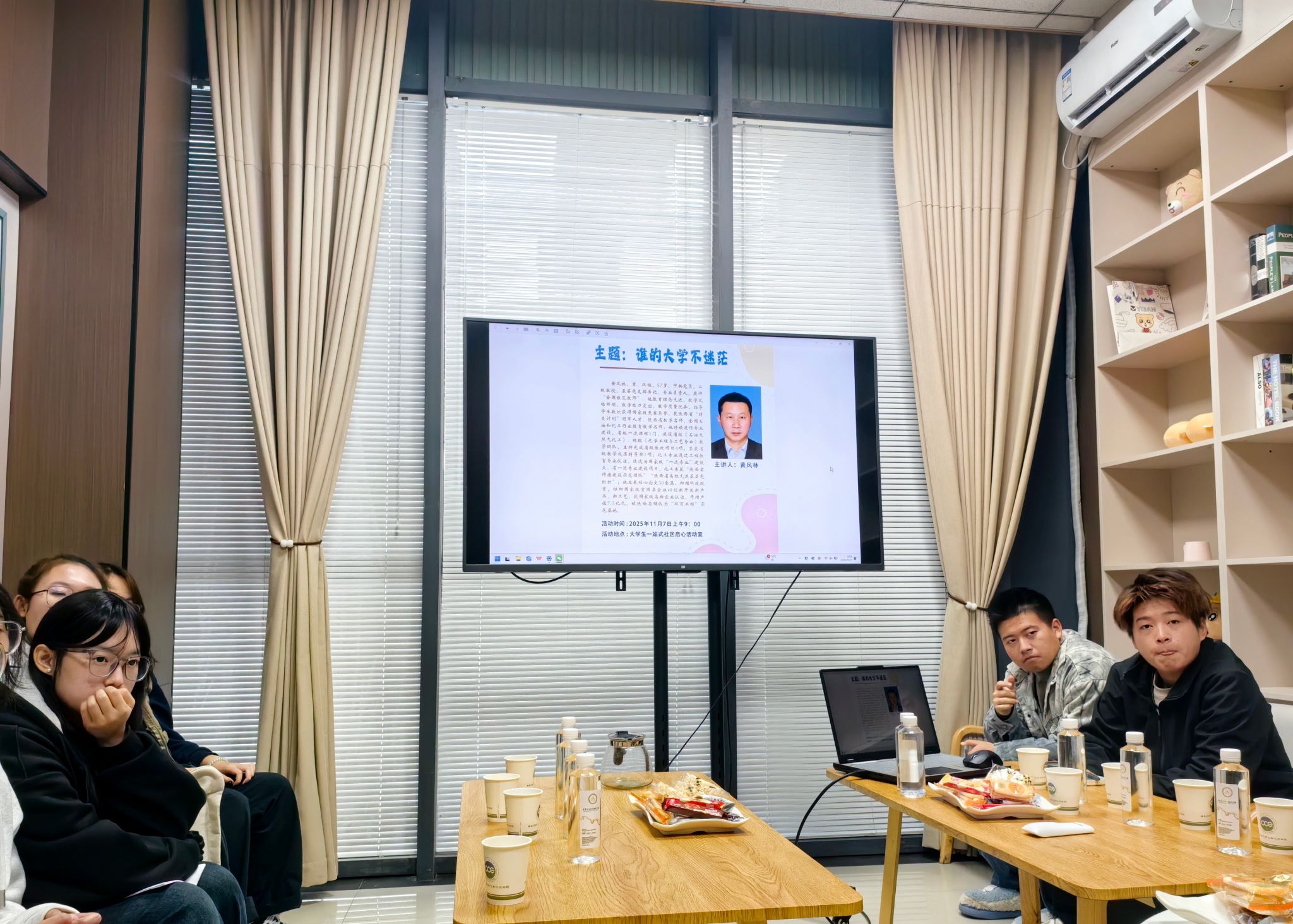 為持續(xù)搭建師生間常態(tài)化交流平臺(tái),幫助學(xué)生科學(xué)合理規(guī)劃大學(xué)生活,持續(xù)推進(jìn)學(xué)風(fēng)建設(shè)工作,11月7日上午,學(xué)院在“一站式”社區(qū)啟心活動(dòng)室舉行第十七期“師”“化”實(shí)說活動(dòng)。本期邀請(qǐng)“全國(guó)模范教師”、二級(jí)教授黃風(fēng)林擔(dān)任主講,圍繞“誰的大學(xué)不迷?!边@一主題,與同學(xué)們展開了一場(chǎng)心靈的對(duì)話?;顒?dòng)由學(xué)院黨委副書記喬曉主持,2025級(jí)應(yīng)用化學(xué)專業(yè)學(xué)生代表參加。