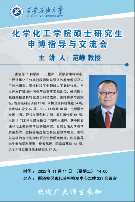 為幫助有申博意向的碩士畢業(yè)生明確發(fā)展方向、掌握申請(qǐng)技巧,11月11日下午,化學(xué)化工學(xué)院在雁塔校區(qū)學(xué)院會(huì)議室召開(kāi)2026屆碩士畢業(yè)生申博指導(dǎo)與交流會(huì)。學(xué)院副院長(zhǎng)范崢、黨委副書(shū)記喬曉、研究生輔導(dǎo)員曹勃及全體有申博意向的2026屆碩士畢業(yè)生參會(huì),會(huì)議由黨委副書(shū)記喬曉主持。