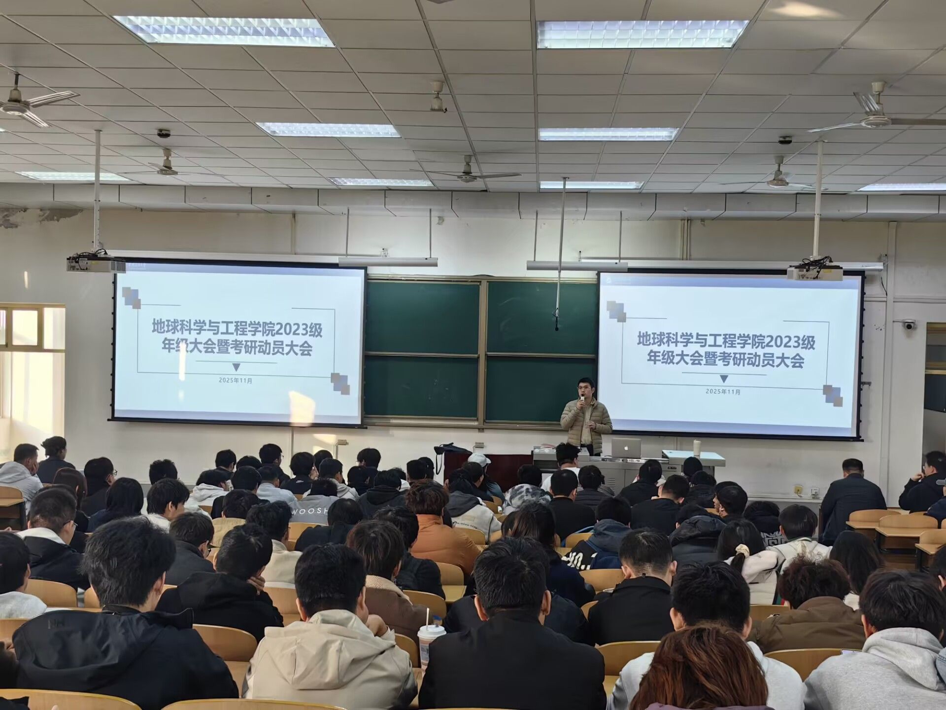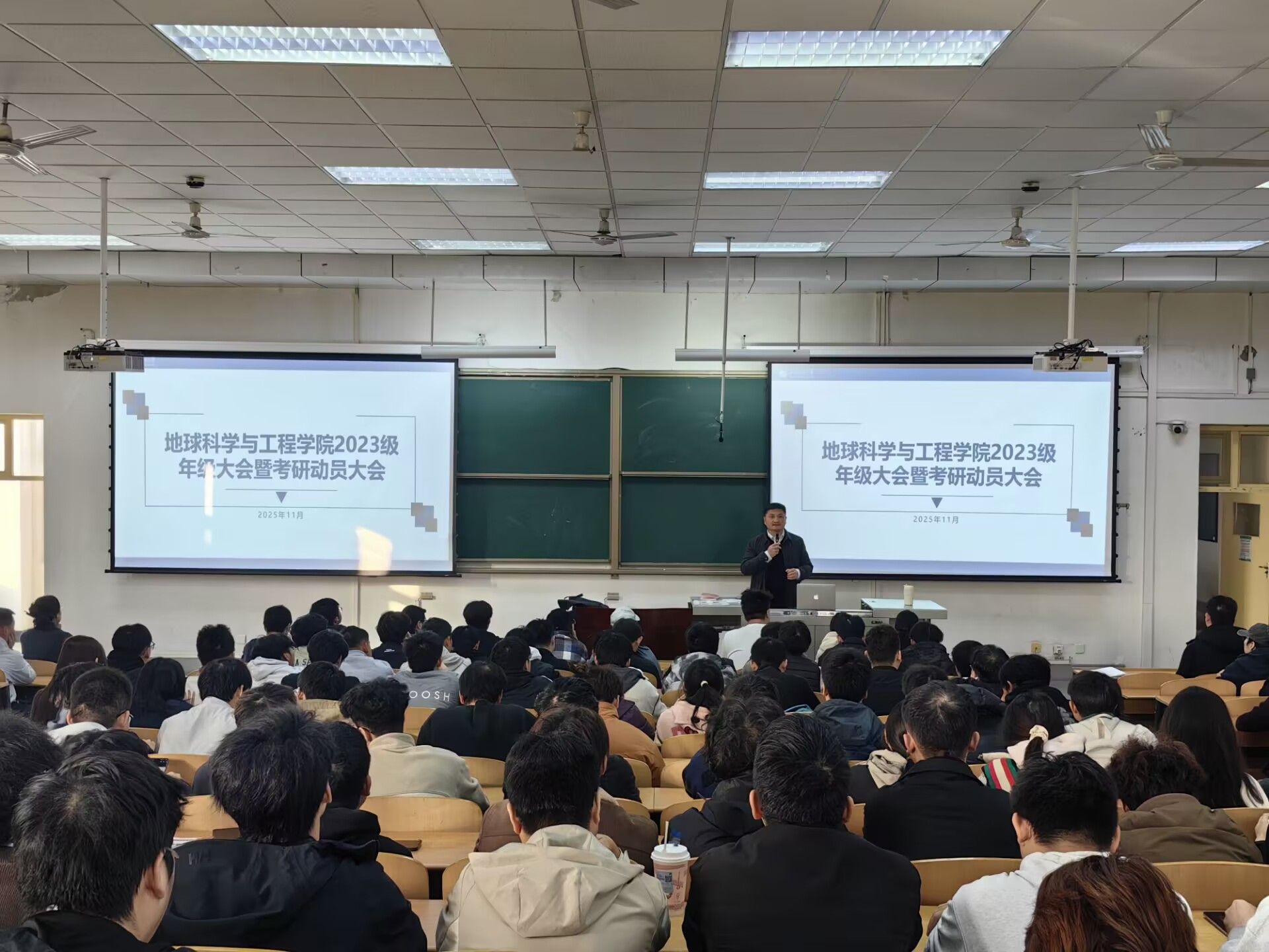 為進(jìn)一步加強(qiáng)學(xué)生安全教育,強(qiáng)化學(xué)風(fēng)建設(shè),引導(dǎo)學(xué)生明確學(xué)業(yè)目標(biāo),地球科學(xué)與工程學(xué)院于11月13日在鄠邑校區(qū)博覽樓239教室舉行2023級年級大會暨考研動員大會。學(xué)院黨委副書記董丙劍出席大會,2023級全體學(xué)生參加。大會由2023級輔導(dǎo)員劉學(xué)斌主持。