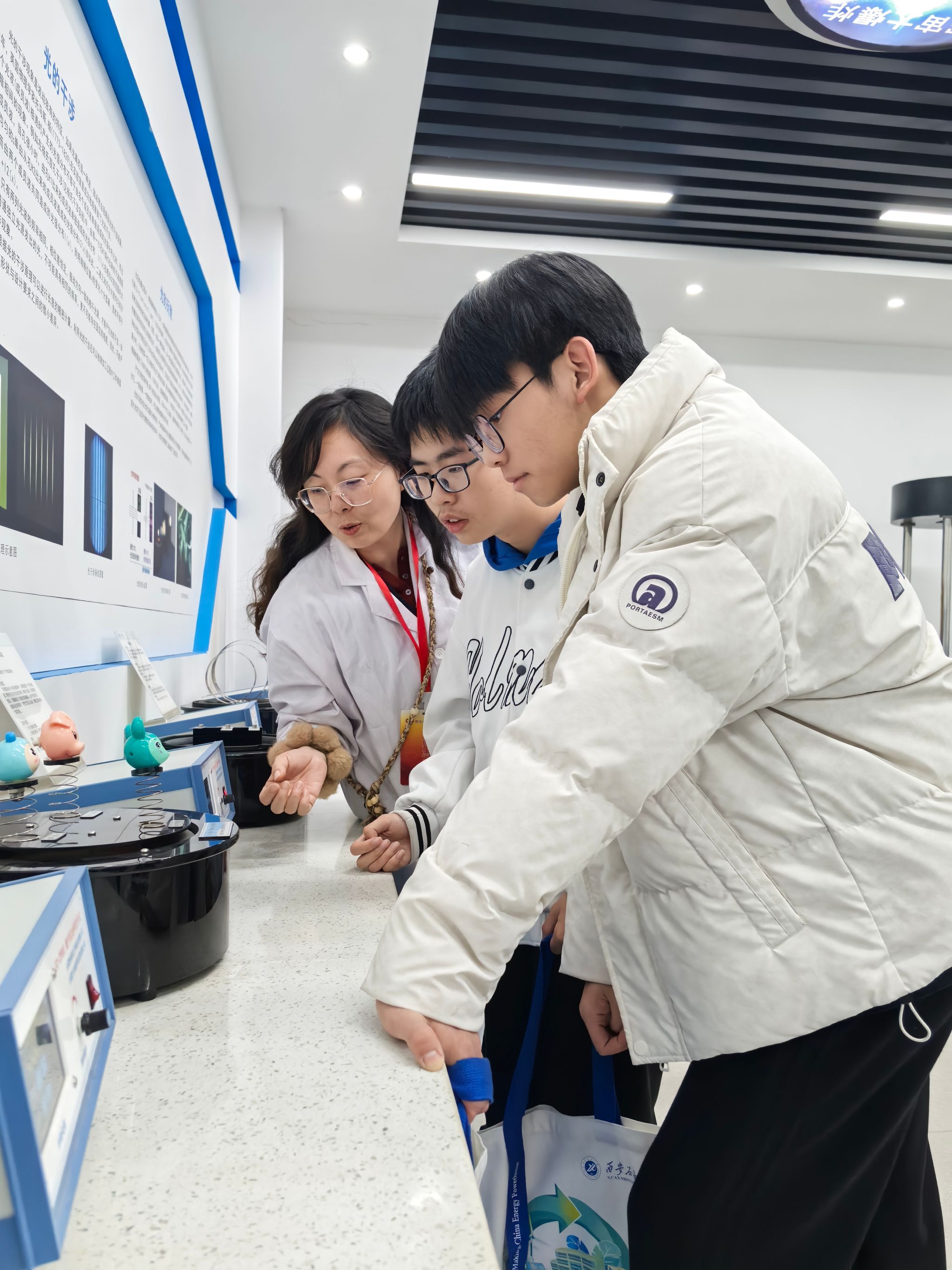研學活動第二站來到理學院物理演示實驗室。物理演示實驗室是陜西省科普教育基地,是集圖像演示、實物操作等功能為一體的開放性實驗室,涵蓋了力學、電磁學、光學、熱學等方面知識。在理學院師生講解員的耐心講解和示范下,同學們依次參觀并親身體驗了一系列精彩的物理實驗。從靈巧的機械裝置,到神奇的電磁感應;從熱現(xiàn)象的微觀奧秘,到光和影的奇幻世界,每一個實驗都讓同學們驚嘆不已,深深感受到了物理世界的無窮魅力。這些精心設計的演示實驗,不僅激發(fā)了學生對物理學奧秘的好奇心與探索欲,更為大家搭建起了一座通往科學殿堂的橋梁,讓物理之美躍然眼前,深入人心。