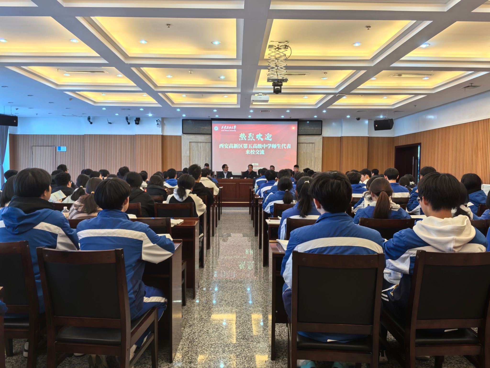 2025年11月19日下午,西安高新區(qū)第五高級中學(以下簡稱五高)受邀來我校開展研學活動,校長劉占權帶領師生代表100余人參加活動。理學院招生宣傳工作組代表學校接待五高師生并在鄠邑校區(qū)第一會議室舉行簡短的歡迎儀式。理學院黨委書記席利哲、副院長馬儇龍、理學院教授兼五高科技副校長郭文閣及理學院教師代表參加歡迎儀式。歡迎儀式開始前,與會人員在圖書館南門臺階前合影留念。歡迎儀式上,席利哲代表學校及理學院對五高師生代表的到來表示熱烈歡迎,并簡要介紹了研學活動行程和學校概況。