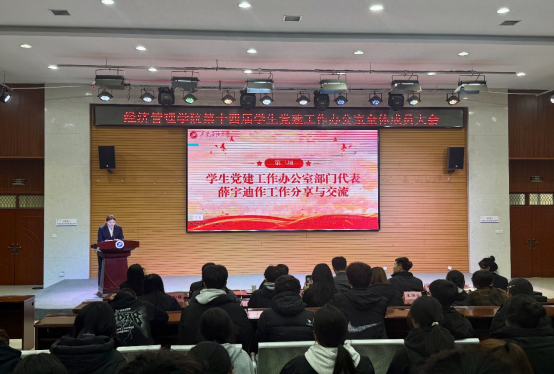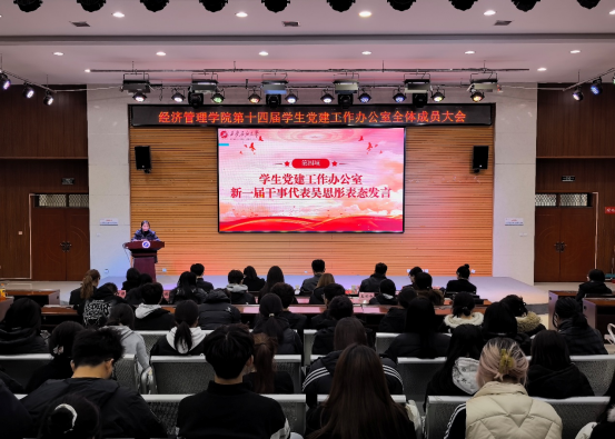 為深入貫徹習(xí)近平新時(shí)代中國(guó)特色社會(huì)主義思想,提升學(xué)生黨建工作人員履職能力,接續(xù)發(fā)揮先鋒模范作用,11月19日,經(jīng)濟(jì)管理學(xué)院在鄠邑校區(qū)崇文樓118多功能廳舉行第十四屆學(xué)生黨建工作辦公室全體成員大會(huì)。經(jīng)濟(jì)管理學(xué)院黨委副書記趙紀(jì)飛、學(xué)生工作辦公室副主任張碩、組織員曹萌,學(xué)生黨建工作辦公室指導(dǎo)老師王業(yè)林、學(xué)生黨建工作辦公室全體成員共180余人參會(huì)。