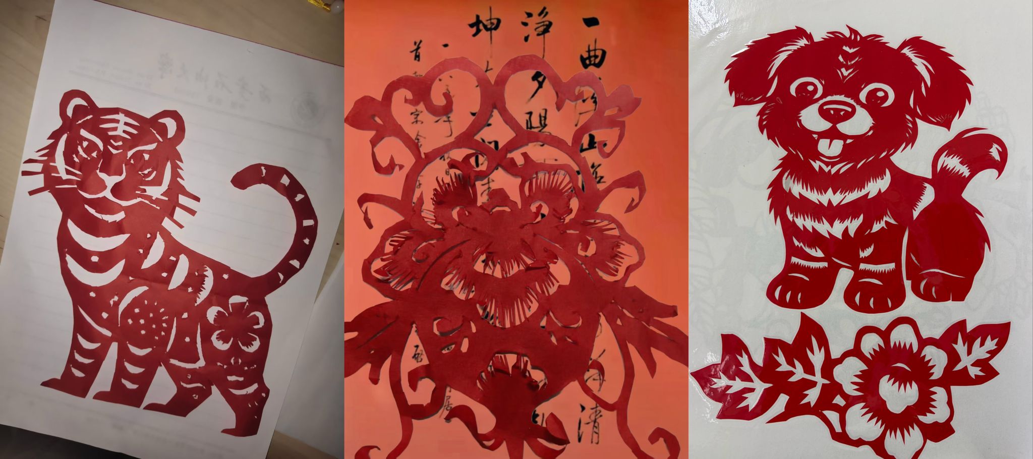 在實踐展示環(huán)節(jié),肖志賢老人展示出令人驚嘆的剪紙技藝。只見她手中剪刀行云流水、紙屑紛飛,不過片刻,一幅幅精美靈動的圖案便躍然眼前,引來同學們陣陣歡呼。在肖老師的帶動下,大家紛紛動手嘗試,全神貫注于折紙、勾畫、裁剪之間。伴隨著剪刀起落,一朵朵紅花、一只只靈獸逐漸在指尖綻放,現場氣氛熱烈而溫馨,充滿成就感和歡聲笑語。