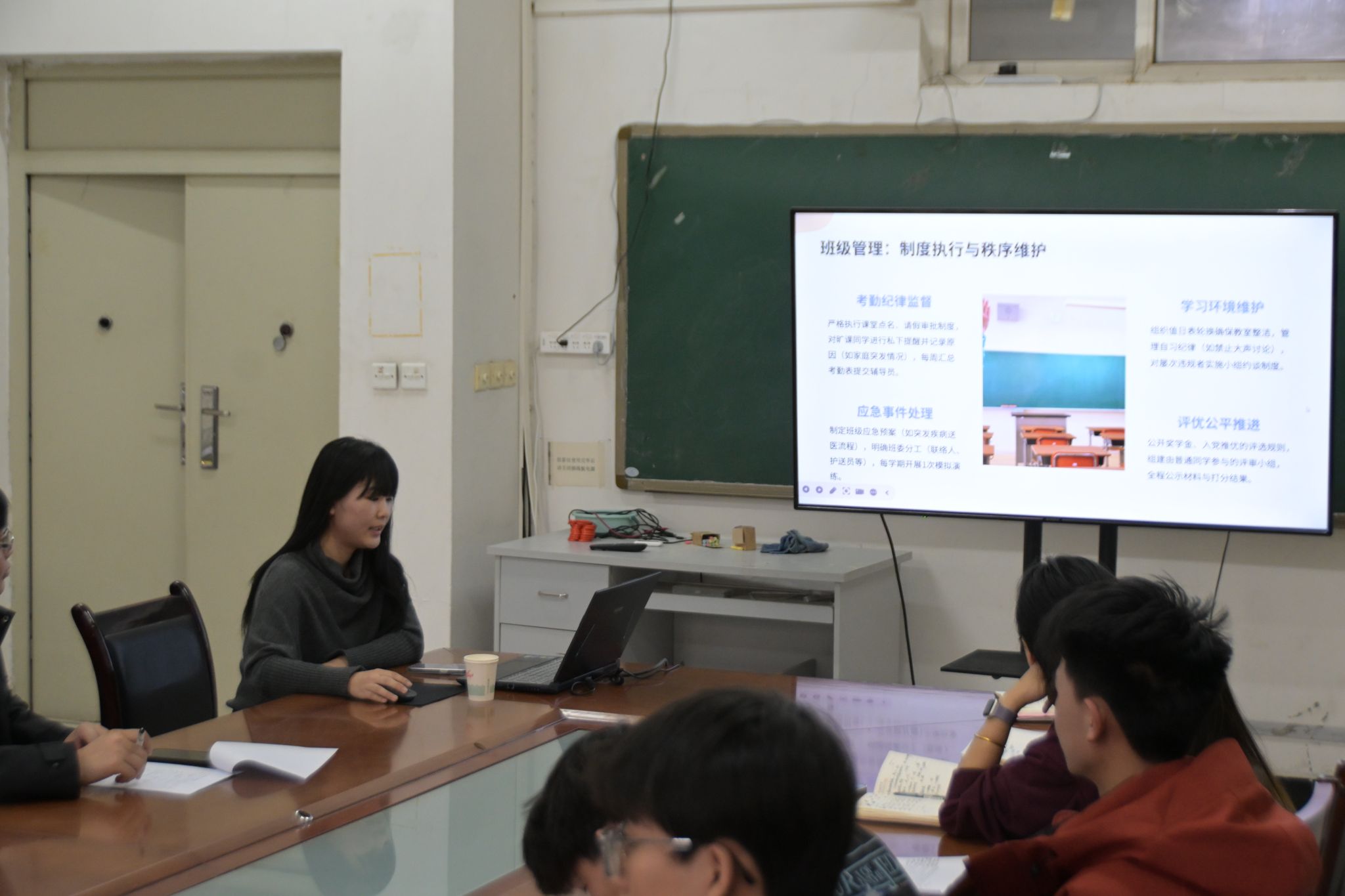 在班長經(jīng)驗分享環(huán)節(jié),六位優(yōu)秀班長代表結(jié)合自己的工作實際,從多個維度展示了富有成效的工作方法與成果。光電2302班李卓蔓從班委團隊建設(shè)入手,闡述了“明確分工、協(xié)同配合”的管理模式,分享了提升班級執(zhí)行力的具體做法;數(shù)計2302班馮曉琪以“思想引領(lǐng)”、“制度建設(shè)”、“活動創(chuàng)新”為主線,介紹了打造特色班級文化的實踐經(jīng)驗;光電2402班王昕國則聚焦大二年級的學(xué)風建設(shè),詳細講解了自己所在班級的“學(xué)業(yè)幫扶小組”等創(chuàng)新舉措的實施效果;數(shù)計2401班施又文同學(xué)就如何更好地服務(wù)班級同學(xué),結(jié)合自身工作實際,分享了她在各項工作過程中的探索與思考;物理2501班劉煜侯結(jié)合新生班級特點,探討了如何通過特色活動快速增強班級凝聚力的有效方法;光電2501班張沁洪則從個人成長角度,講述了從“新手班長”到“班級領(lǐng)航者”的轉(zhuǎn)變歷程,其真摯的感悟引起在場班長的強烈共鳴。