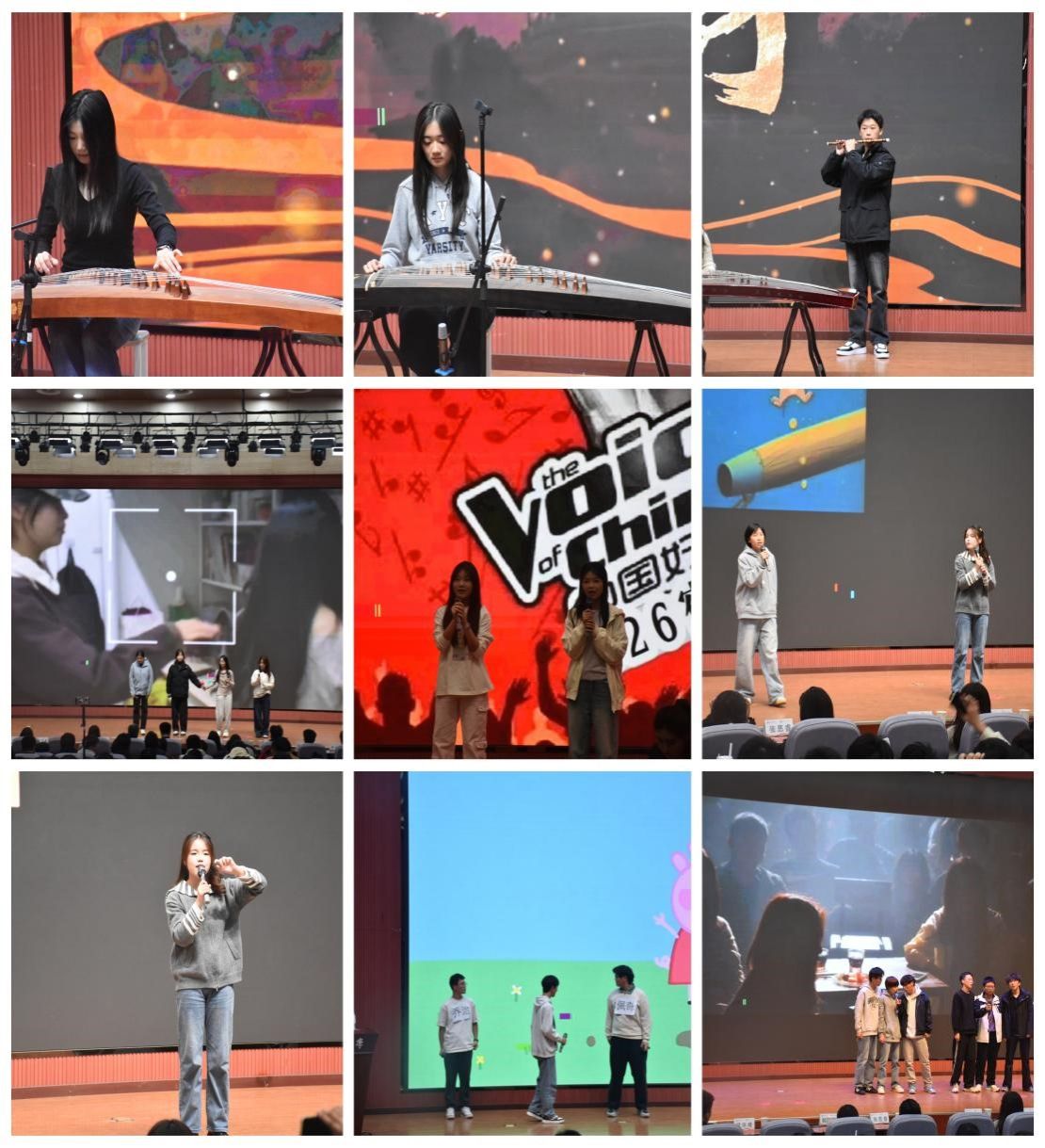 表彰環(huán)節(jié)結(jié)束后,獲獎(jiǎng)宿舍分別展示了各自的豐碩成果。民樂合奏《象王行》先聲奪人,氛圍瞬間點(diǎn)燃;五個(gè)宿舍依次登臺(tái)展示了各具特色的舍徽設(shè)計(jì)歷程,從理念構(gòu)思到視覺成型,每一處細(xì)節(jié)都凝聚著同學(xué)們的巧思與團(tuán)隊(duì)智慧;手抄報(bào)作品《雅室生輝》,通過圖文并茂的形式,生動(dòng)詮釋了宿舍文化的內(nèi)涵,彰顯出深厚的情感寄托與人文意趣;宿舍成員合唱《一笑傾城》、《愛錯(cuò)》、《成都》,以歌聲傳遞出室友間的溫情與默契;宿舍主題演講《屋檐下的星光》《致635的我們》,真摯表達(dá)了同學(xué)們對(duì)宿舍生活的深厚情感與美好期盼;舞臺(tái)劇《宿舍好聲音》、英語表演《Muddy Puddles》及微電影《629“甄嬛傳”之曠課風(fēng)波》,則憑借生動(dòng)演繹與巧妙創(chuàng)意,將現(xiàn)場(chǎng)氣氛推向高潮,笑聲掌聲不絕。