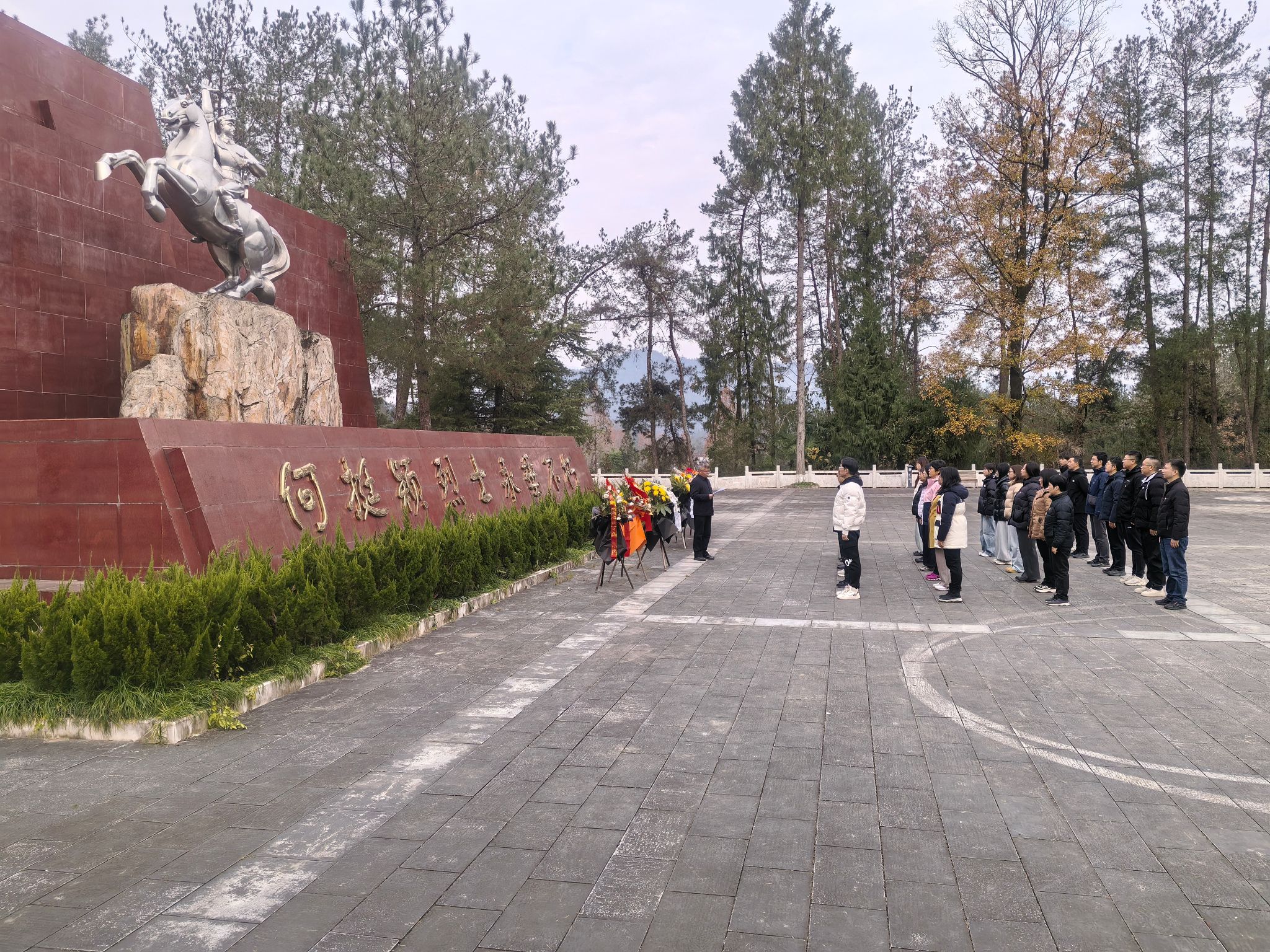參觀結(jié)束后,張驍勇在何挺穎烈士雕塑前為師生們講授了一堂題為《學(xué)黨章鑄忠誠,悟思想強(qiáng)使命-何挺穎烈士事跡介紹》微黨課。他詳細(xì)講述了何挺穎烈士的生平事跡,從何挺穎早年投身革命,到在井岡山革命根據(jù)地的英勇斗爭(zhēng),再到他為革命事業(yè)壯烈犧牲的感人事跡,生動(dòng)地展現(xiàn)了何挺穎烈士對(duì)黨忠誠、勇于擔(dān)當(dāng)、不怕犧牲的崇高精神品質(zhì)。張驍勇通過何挺穎烈士的事跡,深入闡述了黨章中關(guān)于黨員義務(wù)和責(zé)任的相關(guān)內(nèi)容,引導(dǎo)師生們深刻領(lǐng)會(huì)黨的初心和使命。他指出,管道工程學(xué)院黨委本次組織的“學(xué)黨章鑄忠誠,悟思想強(qiáng)使命”的專題學(xué)習(xí)班,就是要學(xué)習(xí)共產(chǎn)黨員所蘊(yùn)含的忠誠和擔(dān)當(dāng)精神,他用自己的一生,樹立了忠誠于黨、忠誠于人民、忠誠于革命事業(yè)的光輝榜樣,要從何挺穎烈士的事跡中汲取力量,不斷強(qiáng)化自己的使命意識(shí),以更加堅(jiān)定的信念、更加飽滿的熱情、更加扎實(shí)的工作,始終保持對(duì)革命事業(yè)的熱愛和執(zhí)著,勇于擔(dān)當(dāng),敢于奉獻(xiàn),以實(shí)際行動(dòng)詮釋共產(chǎn)黨員的使命和擔(dān)當(dāng)。