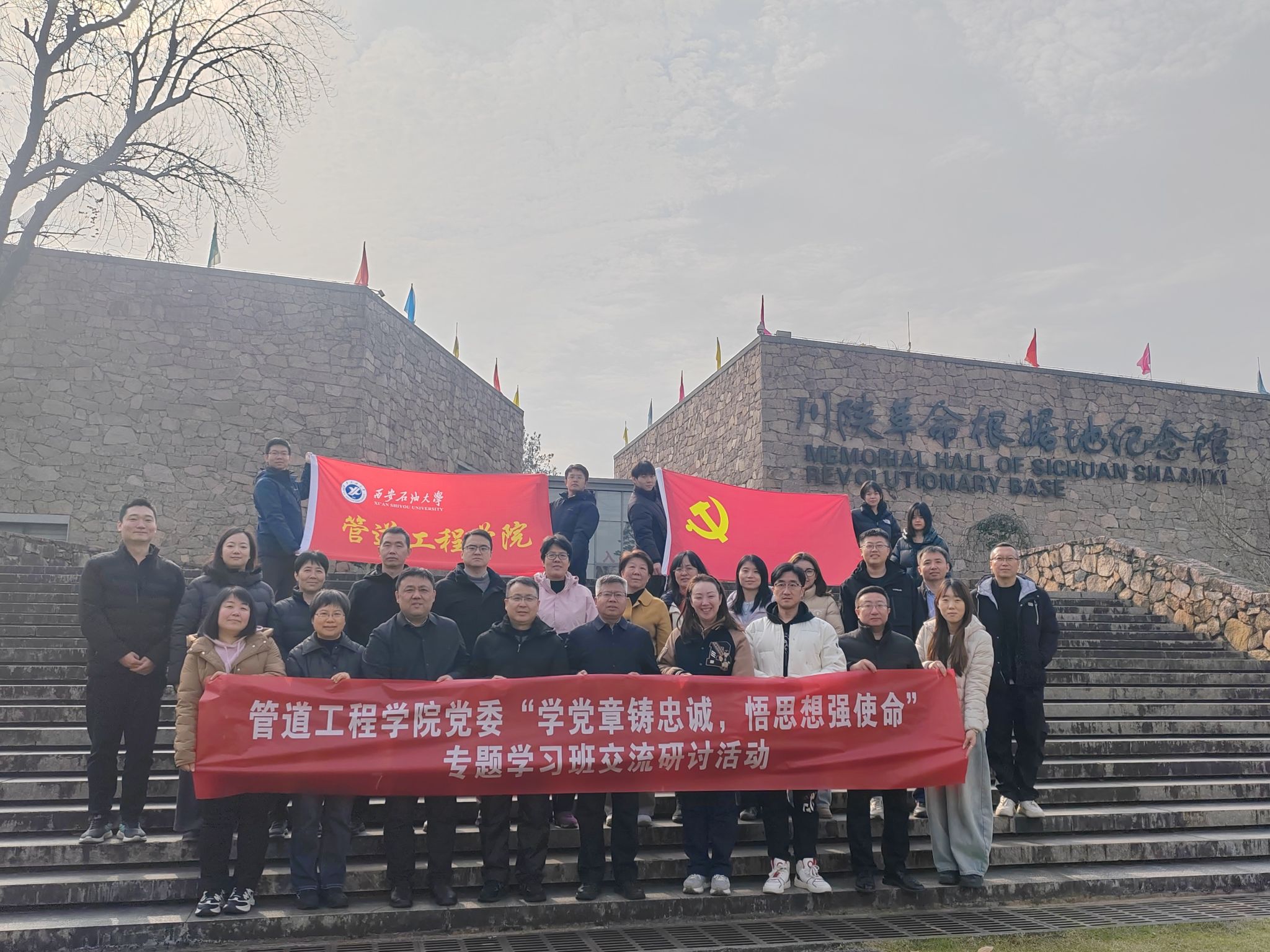 12月6日,管道工程學(xué)院黨委赴陜西漢中川陜革命根據(jù)地紀(jì)念館開展“學(xué)黨章鑄忠誠,悟思想強(qiáng)使命”專題學(xué)習(xí)。校黨委委員、副校長(zhǎng)張驍勇帶隊(duì)參觀全程指導(dǎo)并現(xiàn)場(chǎng)講授微黨課,學(xué)院師生代表20余人參加活動(dòng)。