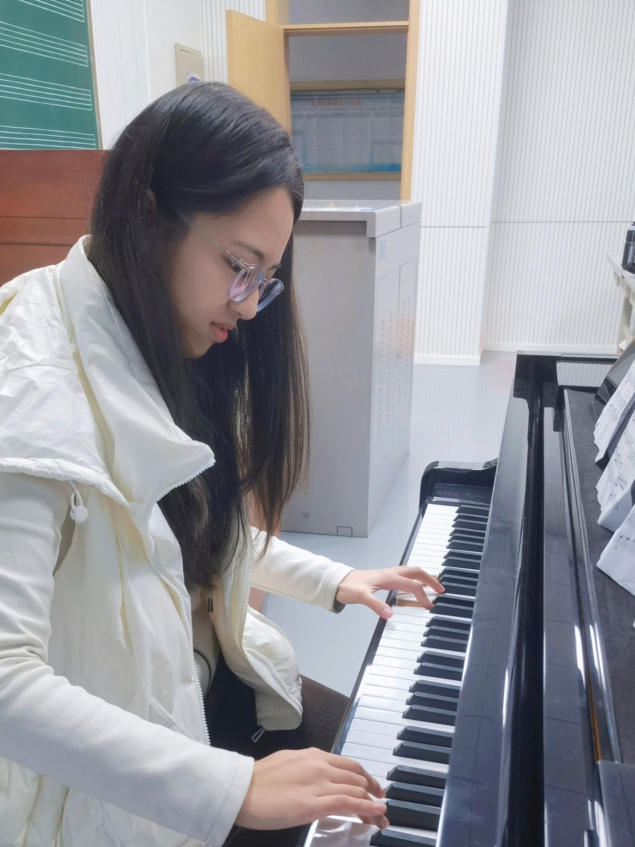 《你的名字》主題曲以悠揚旋律編織相遇與羈絆的溫情,靈動音符里藏著細膩情感,讓我感受到音樂跨越語言的共情力量。鋼琴素養(yǎng)課則帶我叩響音樂之門,從識譜到彈奏,指尖觸鍵的節(jié)奏與邏輯,也和代碼編排有著不一樣的共鳴。這段鋼琴學習的時光不僅教會我用音符表達心緒,更讓我領悟到,無論是音樂創(chuàng)作還是程序編寫,都需要耐心打磨與精準把控。這段鋼琴素養(yǎng)學習的課程讓我收獲頗豐,也希望有更多的同學報名這門選修課,和老師同學們一起體會音樂的魅力!