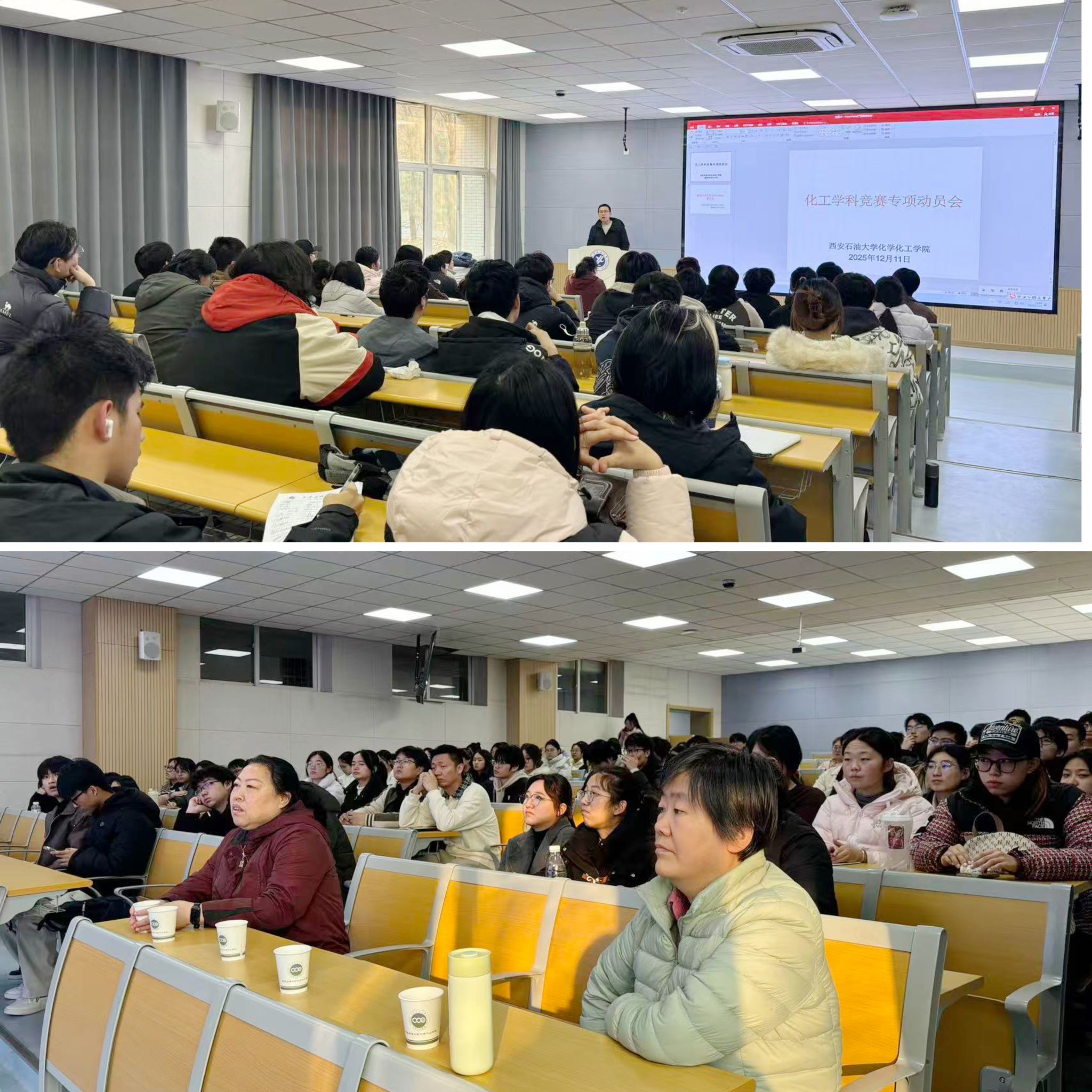 為深化人才培養(yǎng),提升學(xué)生學(xué)科競賽水平,12月11日16:00,化學(xué)化工學(xué)院在鄠邑校區(qū)博覽樓A110教室組織召開了化工學(xué)科競賽專項(xiàng)動員會。動員會由化工系副主任黎小輝主持,邀請化工系學(xué)科競賽指導(dǎo)教師劉菊榮、王進(jìn)擔(dān)任主講,2023級輔導(dǎo)員白婷及2023級、2024級、2025級部分本科生參加了此次活動。