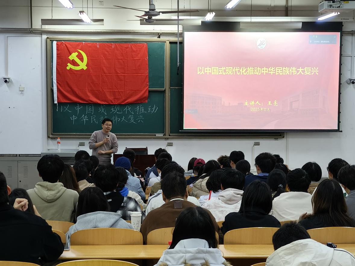 黨委學(xué)生工作部(處)部(處)長(zhǎng)王亮以“以中國(guó)式現(xiàn)代化推進(jìn)中華民族偉大復(fù)興”為題,深入解讀了中國(guó)式現(xiàn)代化的本質(zhì)要求與重大原則,系統(tǒng)闡明了其在政治、經(jīng)濟(jì)、社會(huì)、文化等各領(lǐng)域的深遠(yuǎn)意義。