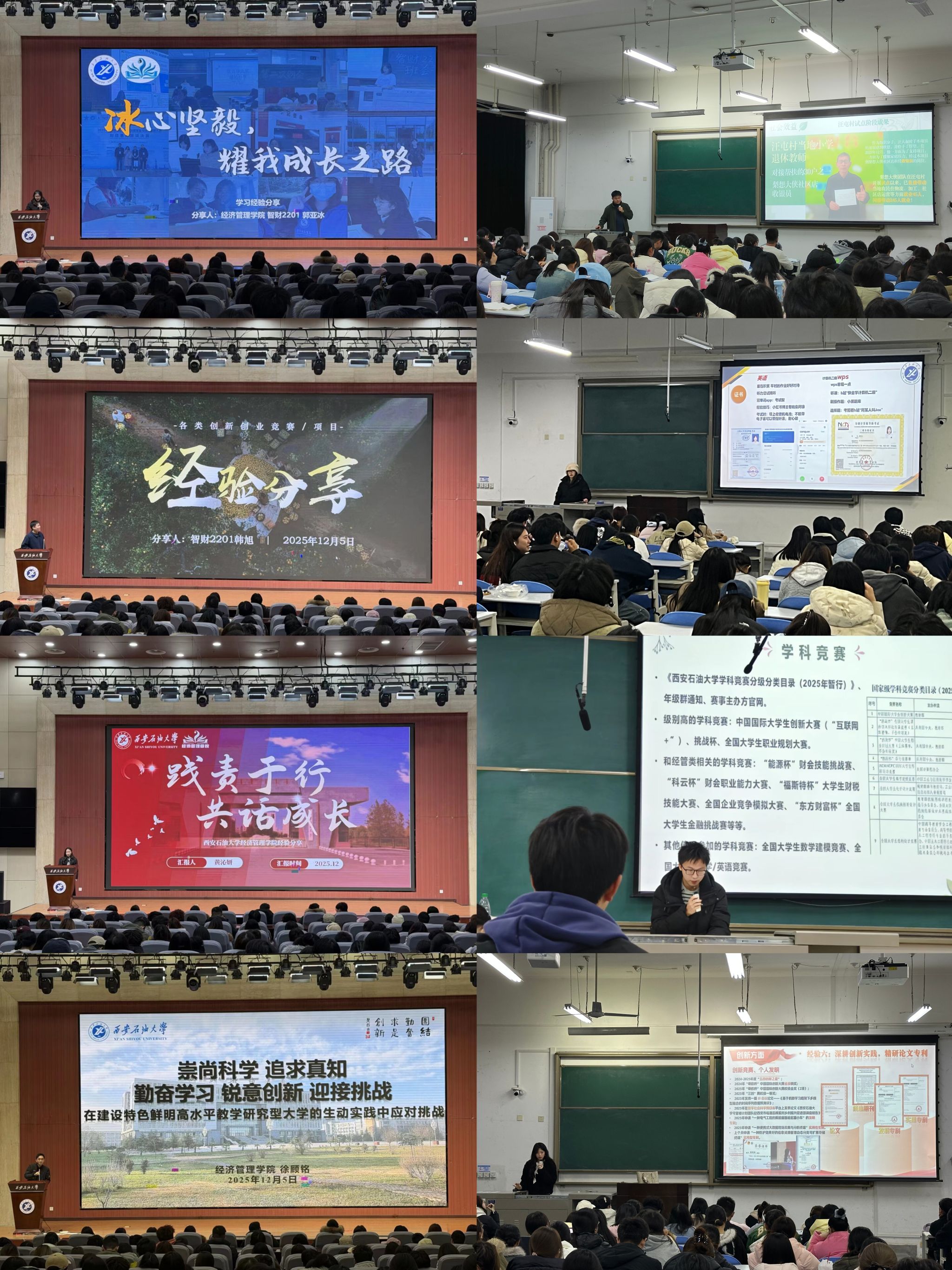 為營造濃厚學(xué)習(xí)氛圍、增強學(xué)生學(xué)習(xí)動力、優(yōu)化學(xué)生學(xué)習(xí)方法,學(xué)院著力打造“傳、幫、帶”互學(xué)互鑒平臺,結(jié)合秋季學(xué)期工作特點,組織新獲得國家獎學(xué)金、成功保研推免的同學(xué)為低年級學(xué)生進(jìn)行經(jīng)驗交流分享。分享內(nèi)容涵蓋大學(xué)生活規(guī)劃、績點和綜測計算方法、英語四六級和難度較大課程學(xué)習(xí)方法、科研競賽的選擇及備賽方式、考證經(jīng)驗分享、推免政策解讀等。有效為低年級學(xué)生明晰學(xué)習(xí)目標(biāo),增強學(xué)習(xí)動力。