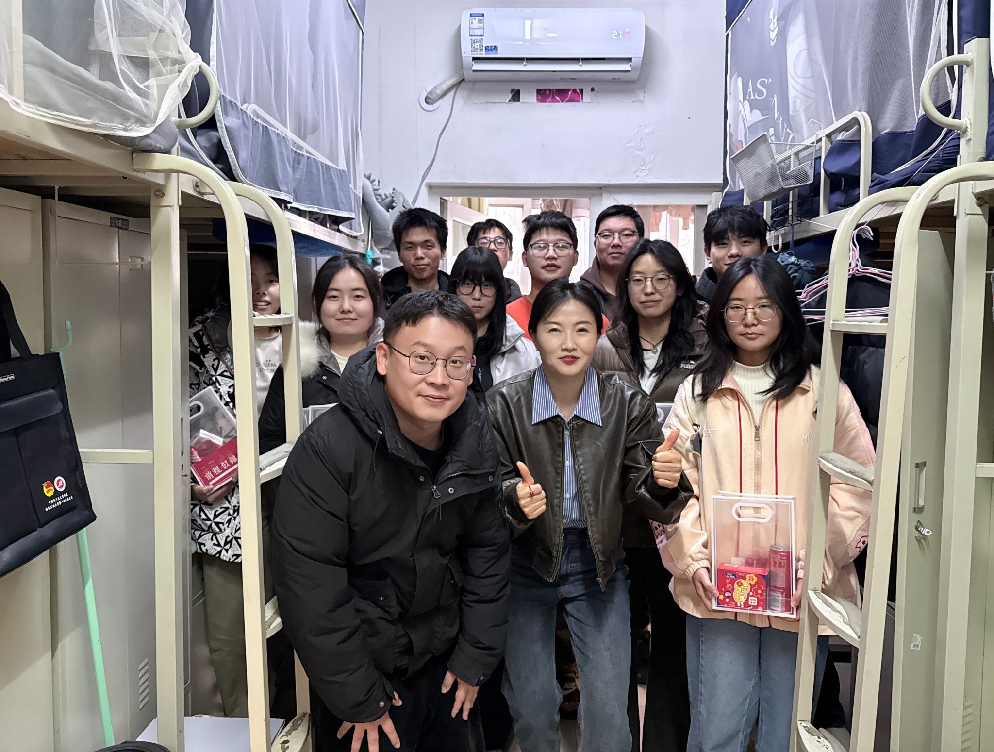 為幫助學生緩解備考壓力、鼓舞決勝信心,12月18日下午,學院黨委副書記喬曉與2022級輔導員秦嶺走訪慰問正在緊張備考的考研學子,為他們送去“獨家定制”的的暖心鼓勵與慰問。