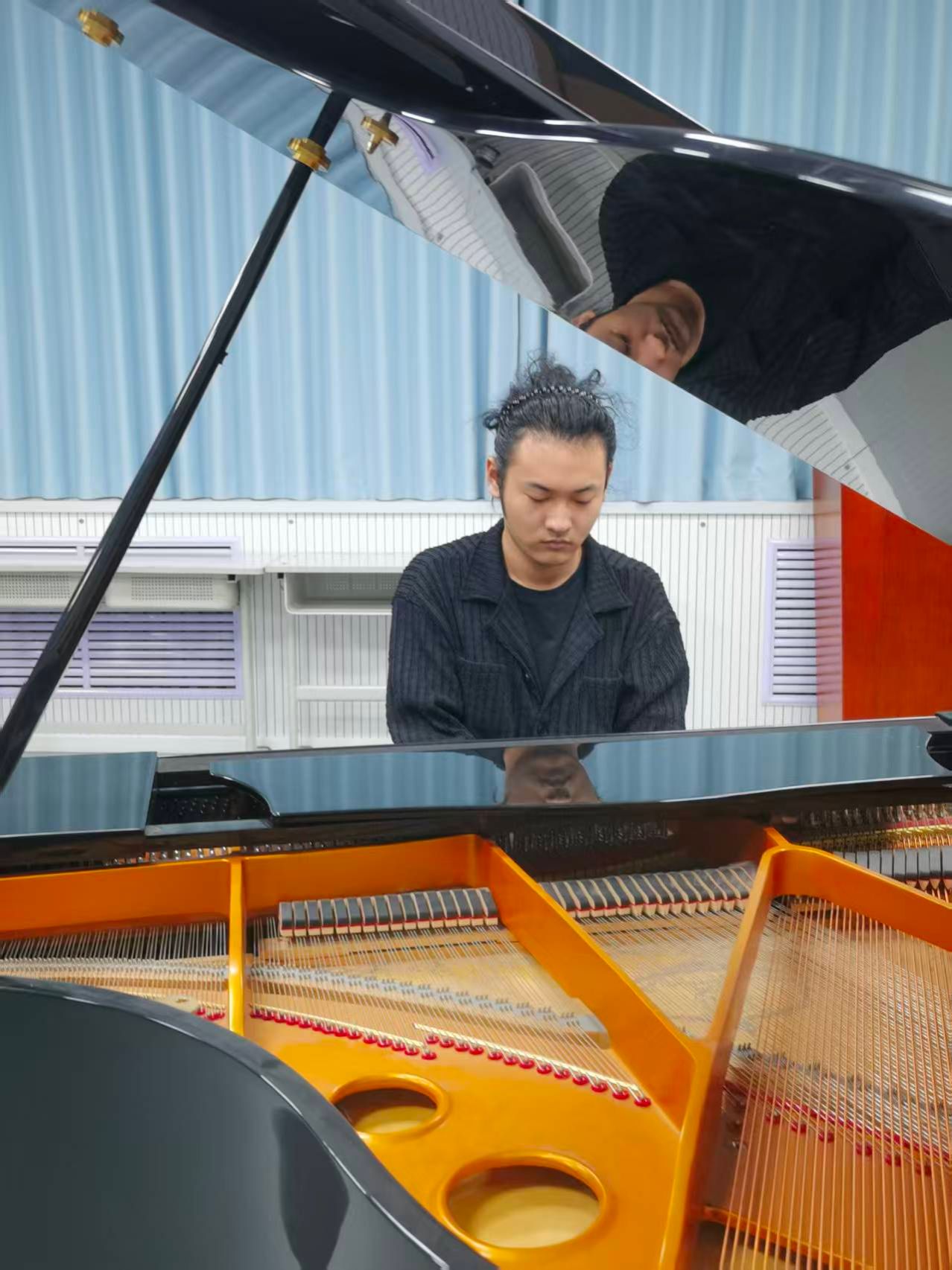楊可欣演奏的張朝作品《遐想》,以云南哈尼族民族音調(diào)為根基,將傳統(tǒng)民族元素與現(xiàn)代鋼琴技法精妙融合,新穎的調(diào)性和聲與動感節(jié)奏交織出清新奮進的意境。演奏者精準(zhǔn)把握了作品的民族底蘊與世界表達的平衡,既通過靈動的指尖傳遞出民族音樂的獨特韻律,更讓觀眾在旋律中讀懂作曲家推動民族音樂走向世界的初心——這種“民族的才是世界的”藝術(shù)表達,正是思政教育中文化自信的生動詮釋,悠揚旋律不僅實現(xiàn)了美育對審美素養(yǎng)的浸潤,更讓青年學(xué)子在民族音樂的傳承與創(chuàng)新中,堅定了守護文化根脈、傳播中國聲音的信念,達成了藝術(shù)欣賞與價值引領(lǐng)的同頻共振。