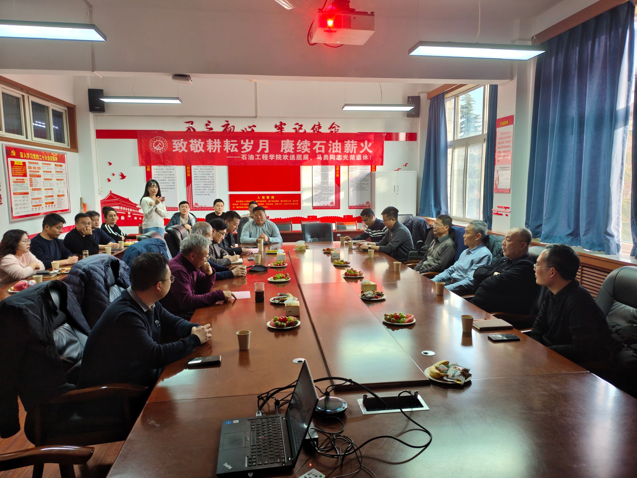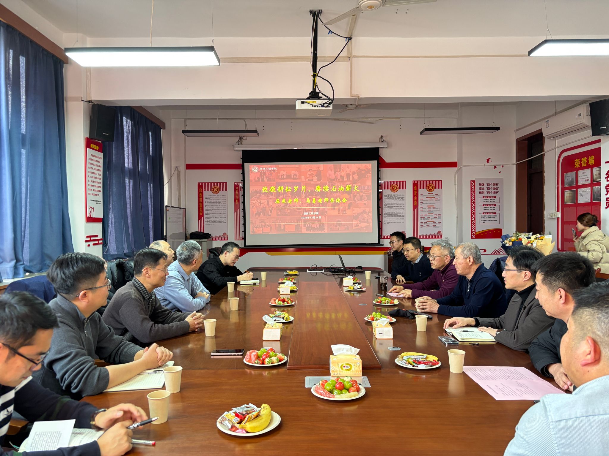 歲月如歌,薪火相傳。12月24日下午,石油工程學(xué)院于雁塔校區(qū)第一教學(xué)樓603會議室隆重舉行“致敬耕耘歲月,賡續(xù)石油薪火”主題榮休會,深情歡送屈展、馬勇兩位榮退教師。學(xué)院班子成員、退休教師代表、兩位老師往屆所帶學(xué)生和原任辦公室同事、學(xué)院教師代表齊聚一堂,共憶執(zhí)教歲月,共話師恩情誼,共送美好祝福。