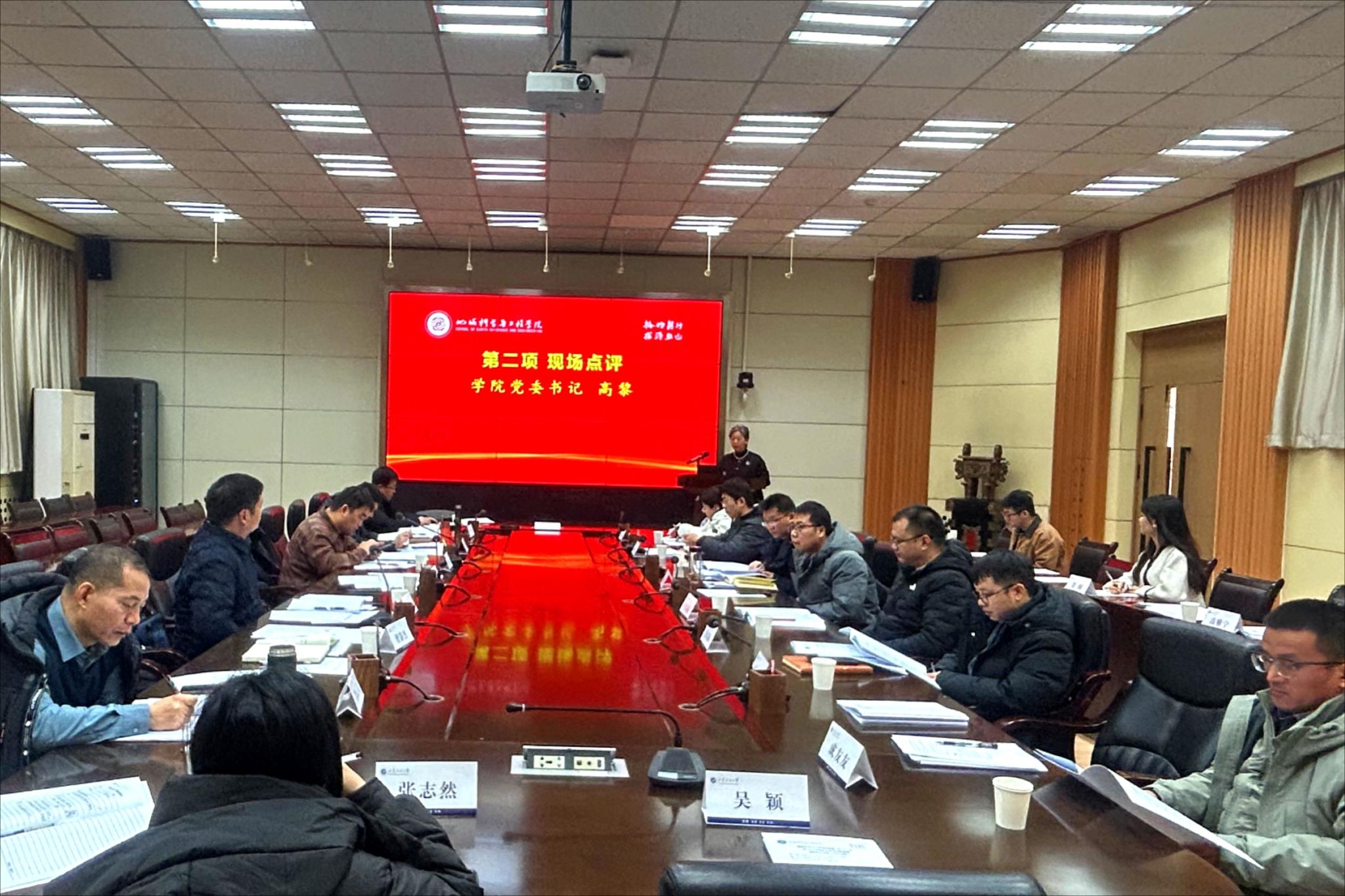 會議嚴(yán)格落實“一述一評”要求,學(xué)院領(lǐng)導(dǎo)班子成員結(jié)合分管工作逐一點評,肯定工作亮點,指出存在不足,提出針對性指導(dǎo)意見。