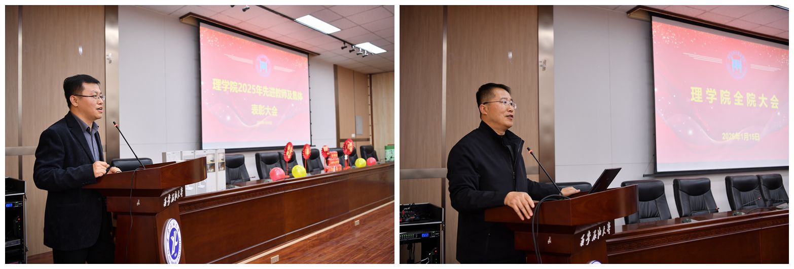 折延宏在主持中指出,2025年是全院師生員工凝心聚力、砥礪前行的一年,是學(xué)院各項(xiàng)事業(yè)穩(wěn)中有進(jìn)、碩果累累的一年。他全面回顧了2025年理學(xué)院在黨建引領(lǐng)、學(xué)科建設(shè)、教學(xué)科研、人才培養(yǎng)、學(xué)生工作、服務(wù)社會(huì)等方面取得的豐碩成果,并指出這些成績(jī)的取得凝聚著每一位師生的智慧與汗水,為學(xué)院高質(zhì)量發(fā)展奠定了堅(jiān)實(shí)基礎(chǔ)。
