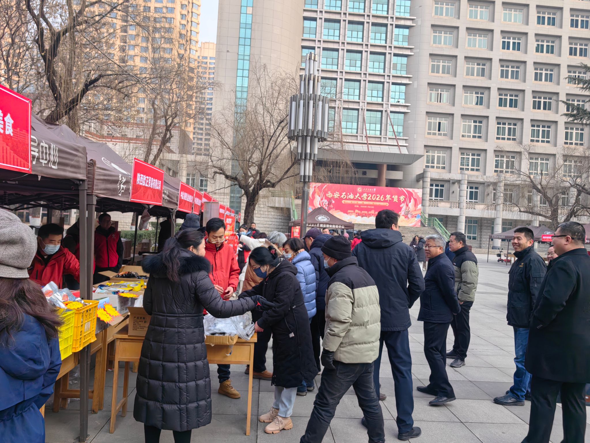 歲末寒意濃,校情暖人心。為深入落實(shí)校黨委“以教職工為中心” 的發(fā)展理念,將 “幸福西石大” 建設(shè)要求轉(zhuǎn)化為看得見(jiàn)、摸得著的民生福祉,1 月23日,由校工會(huì)、后勤處、離退休工作處、石大資產(chǎn)經(jīng)營(yíng)公司聯(lián)合承辦的2026 年春節(jié)教職工專屬年貨節(jié)在我校雁塔校區(qū)圓滿舉辦。校黨委副書(shū)記程永清,副校長(zhǎng)張驍勇、趙健等校領(lǐng)導(dǎo)親臨現(xiàn)場(chǎng)巡展,與教職工親切互動(dòng),共品年味、共話發(fā)展。本次活動(dòng)以“品質(zhì)優(yōu)、價(jià)格惠、服務(wù)暖、文化濃” 的鮮明特色,成為校黨委心系教職工、服務(wù)教職工的生動(dòng)實(shí)踐。