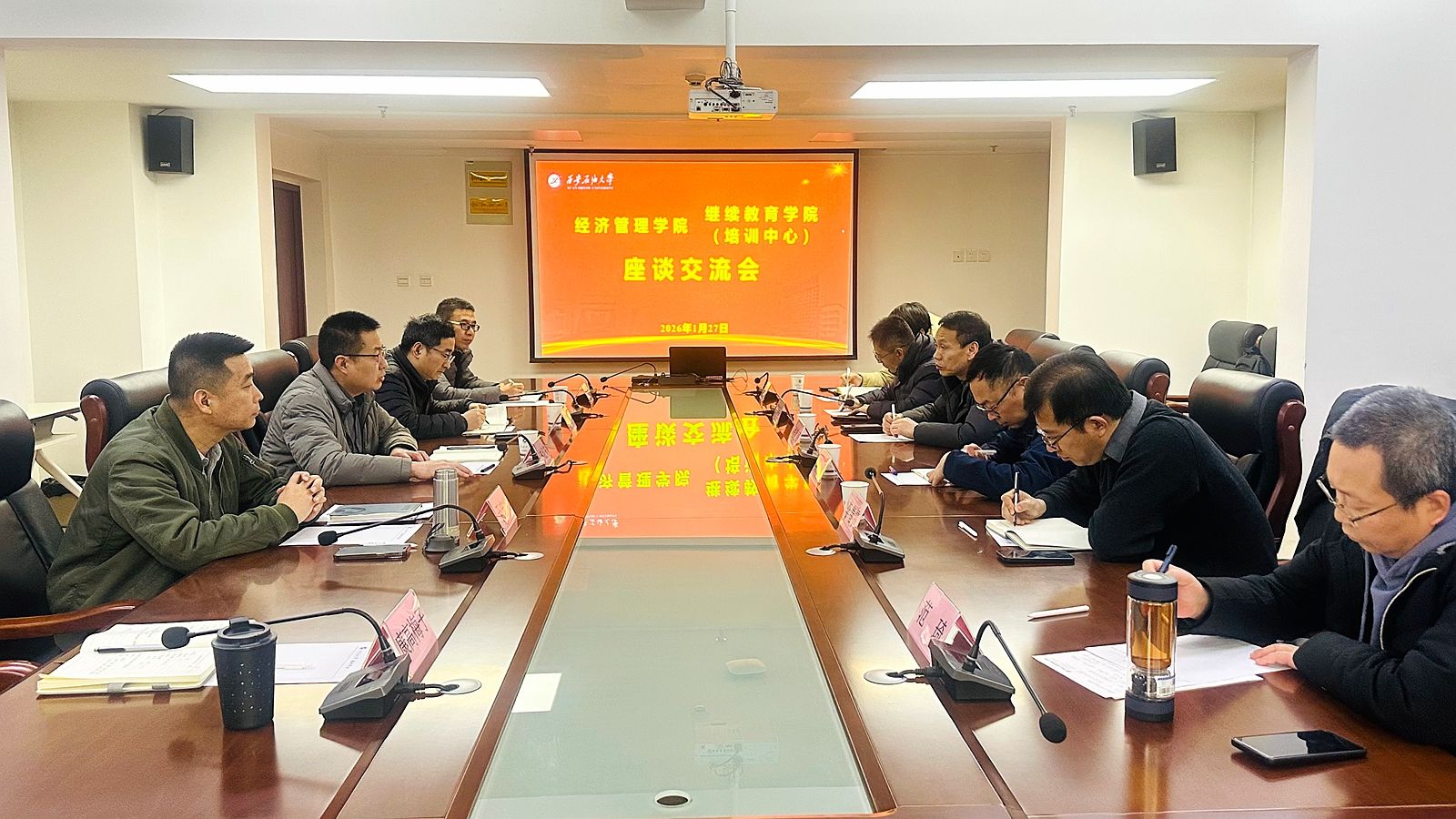 為充分發(fā)揮校內(nèi)優(yōu)質(zhì)資源,探索繼續(xù)教育與校內(nèi)學(xué)院教學(xué)科研深度融合發(fā)展新模式,1月27日下午,繼續(xù)教育學(xué)院(培訓(xùn)中心)與經(jīng)濟管理學(xué)院在明德校區(qū)召開合作發(fā)展座談交流會。經(jīng)濟管理學(xué)院黨委書記張凌寒、院長吳勛及班子成員,繼續(xù)教育學(xué)院(培訓(xùn)中心)院長(主任)林紅先及班子成員出席座談會。林紅先主持會議。