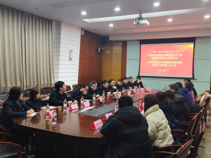 1月29日,中石油煤層氣有限責(zé)任公司工程技術(shù)研究院第三黨支部走進(jìn)校園,與新能源科學(xué)與工程系教工黨支部聯(lián)合開展了主題為“黨建引領(lǐng),業(yè)務(wù)互促”的支部共建活動(dòng)。此次活動(dòng)旨在通過校企深度聯(lián)動(dòng),探索黨建與科研教學(xué)深度融合的新路徑。煤層氣公司工程技術(shù)研究院院長(zhǎng)郝鵬程、一級(jí)工程師孫斌,新能源學(xué)院黨委書記顏庭星、石油工程學(xué)院副院長(zhǎng)張明、新能源科學(xué)與工程系教工黨支部書記王洋及雙方黨員代表等20余人參加此次活動(dòng)。