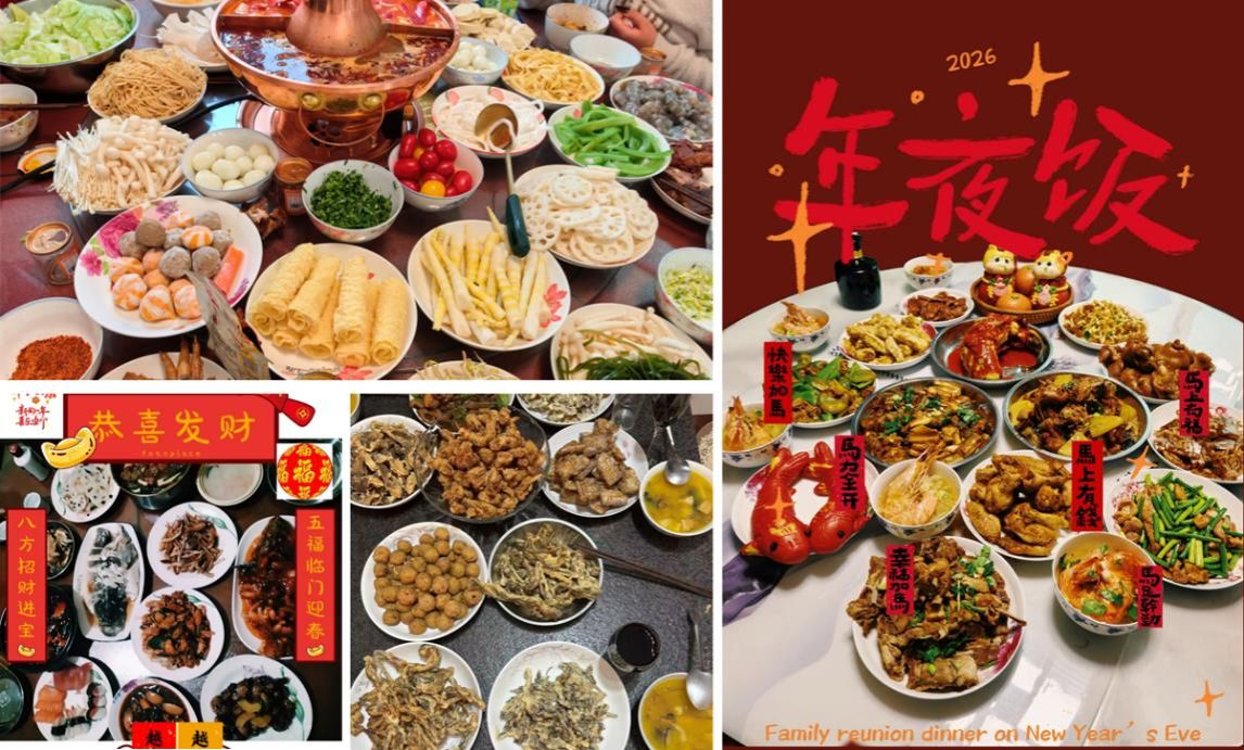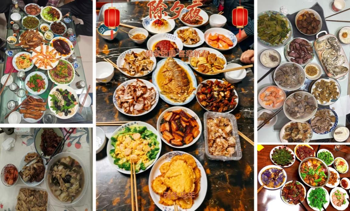 云端相聚,美食傳情。春節(jié)期間,學(xué)院工會依托微信平臺舉辦“曬美食·慶團圓·迎新春”線上美食分享活動,鼓勵學(xué)院教師用鏡頭分享自家的年夜飯、家鄉(xiāng)特色美食及春節(jié)家宴場景。除夕之夜,全院教職工隔屏相會,在歡聲笑語中迎接丙午馬年。從北方的餃子、醬肘子到南方的年糕、盆菜,從東部的海鮮大餐到西部的臘肉、火鍋——鏡頭定格的不僅是舌尖上的鄉(xiāng)愁,更是中華飲食文化的生動傳承。老師們用影像記錄年味記憶,在方寸屏幕間傳遞祝福、溫暖彼此?;顒右悦朗碁槊?,以文化為核,讓天南海北的年味在云端交融,既豐富了假期生活,也增強了學(xué)院凝聚力。
